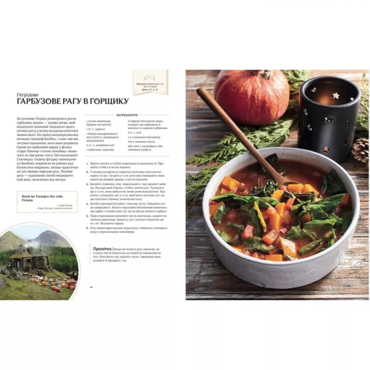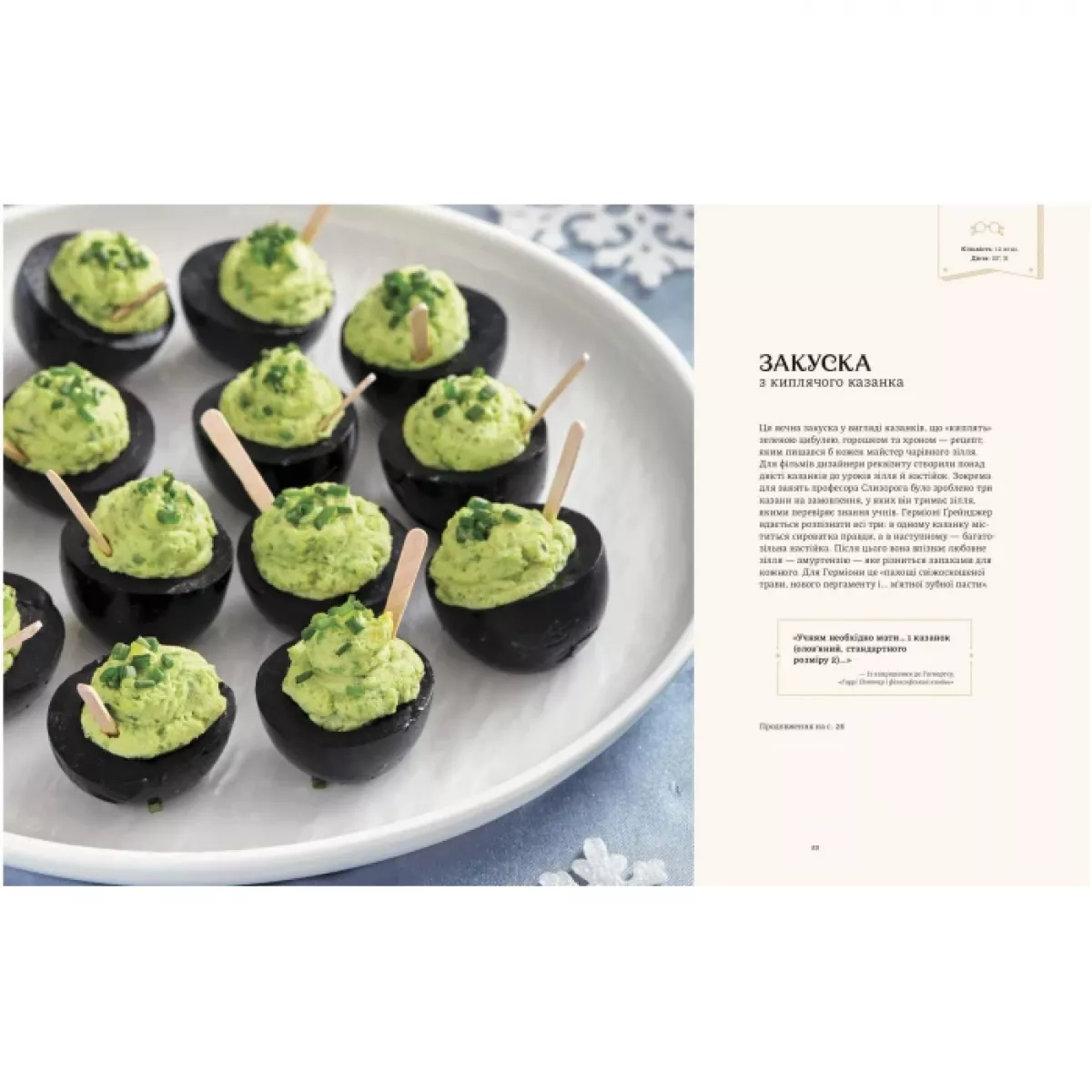 Книга охоплює все: від закусок, основних страв та гарнірів до неймовірних десертів та напоїв. Чи готові ви спробувати Вершкове пиво власного приготування? Або, можливо, вас зацікавлять гарбузові тарталетки, які так полюбляли учні Гоґвортсу? Кожен розділ книги ретельно продуманий, щоб надати вам вичерпну інформацію та натхнення для кулінарних експериментів. Це не просто книга, це джерело натхнення для створення незабутніх моментів з родиною та друзями, розділяючи радість святкування та магію смаку.
