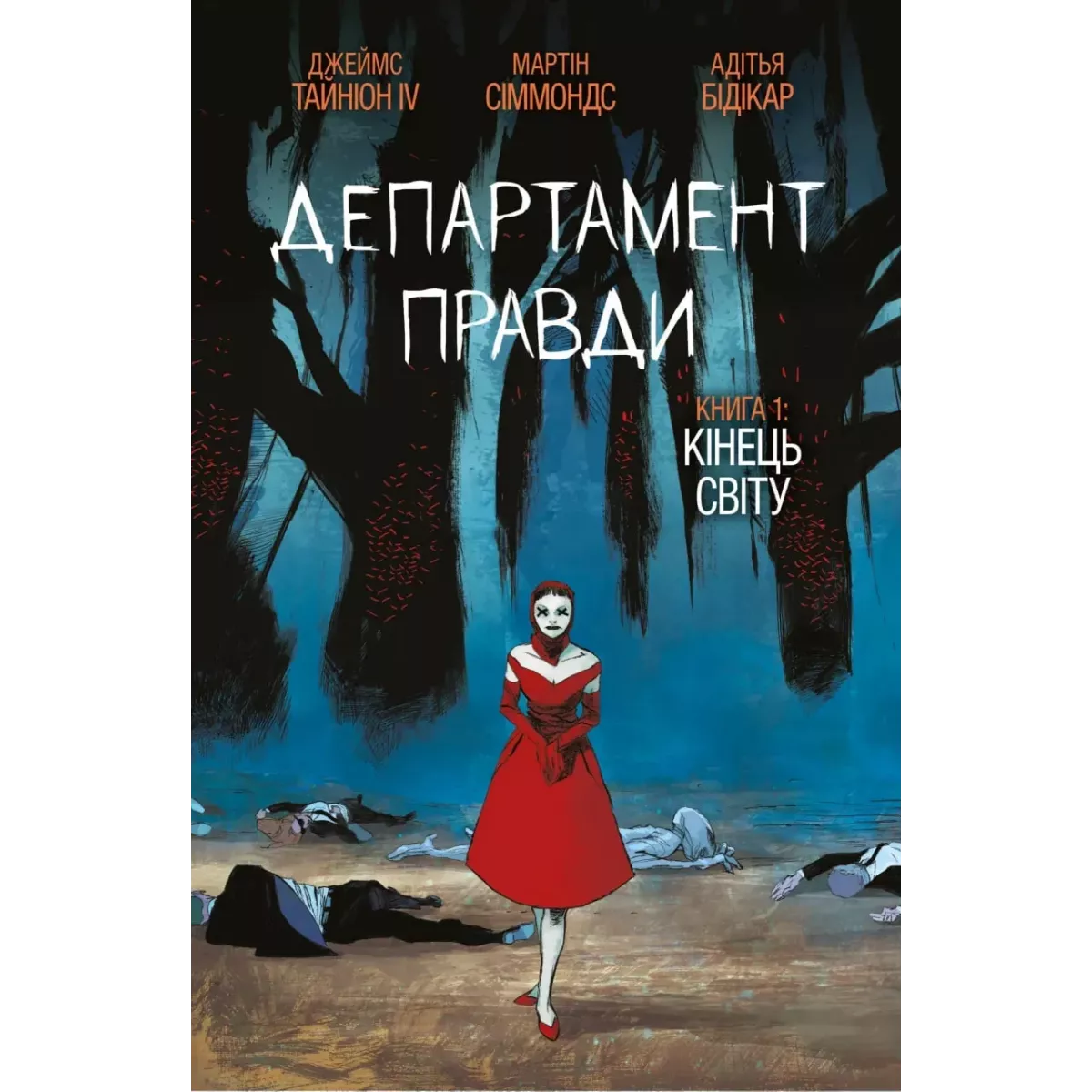 Цей український комікс у твердій обкладинці запрошує читачів у глибини конспірологічного жаху, де межі між фактом та вигадкою стираються, а найбезглуздіші історії отримують смертоносну силу, якщо достатньо людей у них повірять. Джеймс Тайніон IV, відомий своїми роботи над такими хітами як «Something Is Killing The Children» та «The Nice House on the Lake», знову доводить свій талант у створенні атмосферних, психологічно напружених оповідей, що змушують замислитися над природою реальності. Художнє оформлення Мартіна Сіммондса, з його унікальним, дещо розмитим і сюрреалістичним стилем, ідеально підкреслює гнітючу і параноїдальну атмосферу «Департаменту Правди», занурюючи читача в моторошну візуальну подорож.