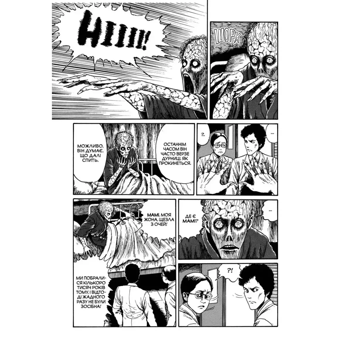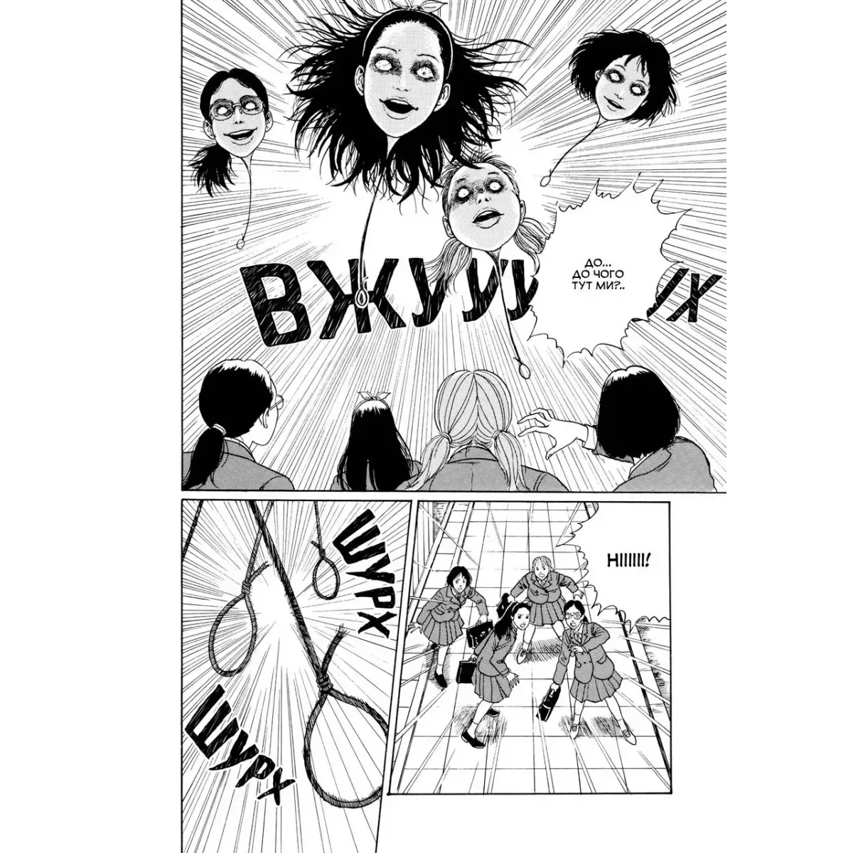 • Візуальна Насолода та Жах: Неймовірно деталізовані та водночас огидні ілюстрації Джюнджі Іто є невід'ємною частиною його творчості, вони буквально "оживають" на сторінках, стаючи кошмарами наяву.