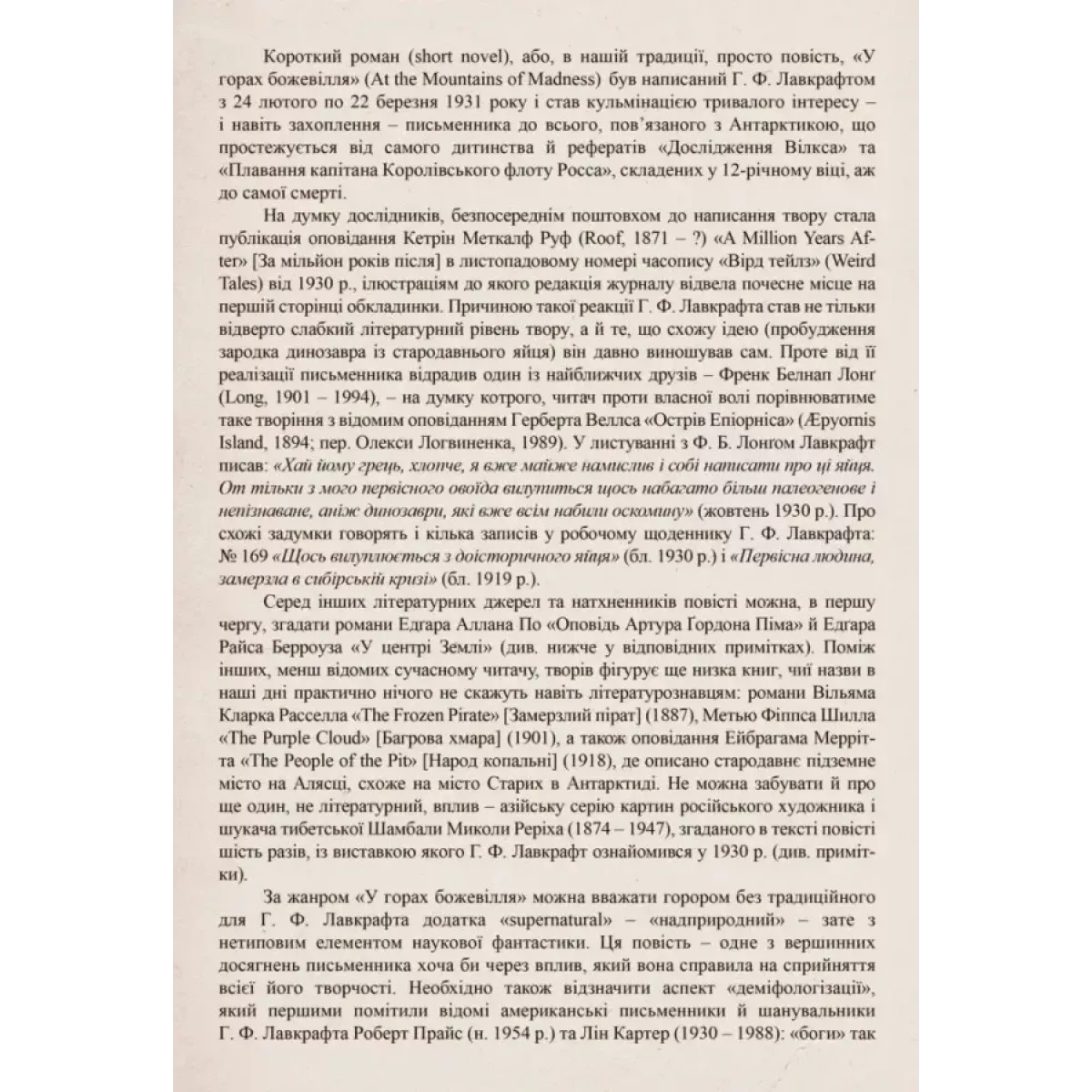 Якщо ви шукаєте книгу, яка змусить вас замислитися про справжні масштаби буття, про давні істоти, що сплять у глибинах часу, та про крихкість нашого світогляду, то «Путівник по горах божевілля» – ваш вибір. Це видання несе в собі не лише захопливу розповідь, але й запрошення до філософських роздумів про вічні теми. Відчуйте холодний подих мороку, що віє з арктичних пусток, і дозвольте собі заблукати серед гір, що носять ім'я божевілля.