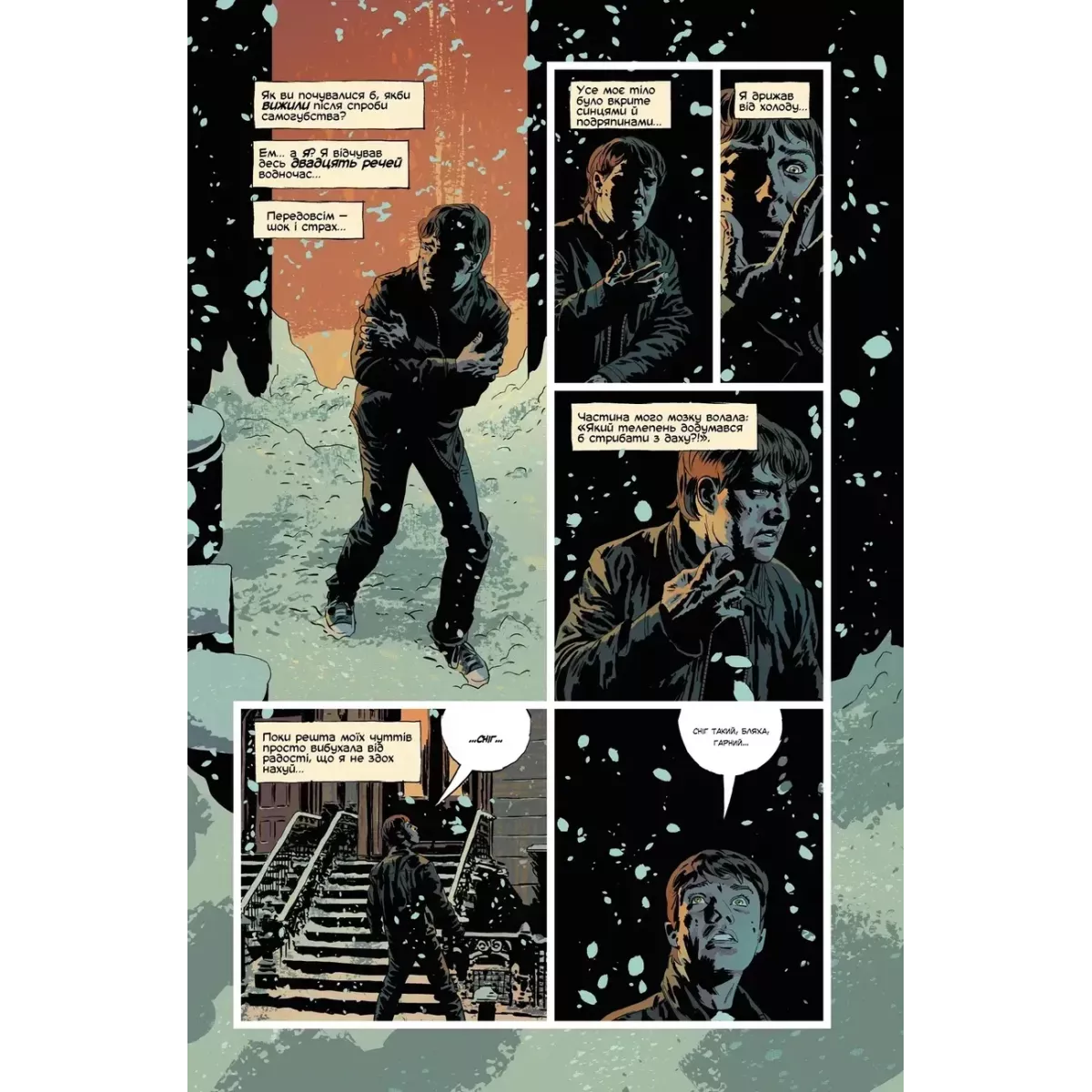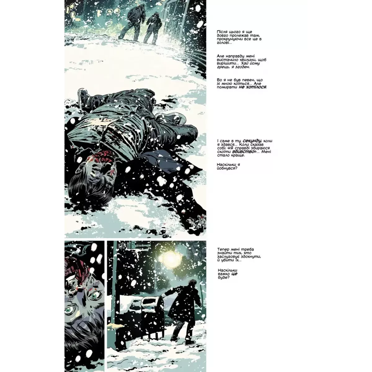 Візуальна складова коміксу виконана у стилі, що ідеально доповнює похмурий наратив. Художники створили атмосферу, яка дихає напругою та тривогою. Чіткі лінії, виразні тіні та майстерна робота з кольором підкреслюють драматизм подій, роблячи читання ще більш занурювальним. Міські пейзажі, провулки, бари – кожна деталь промальована з увагою, створюючи цілісний та переконливий світ, у якому відбувається дія.