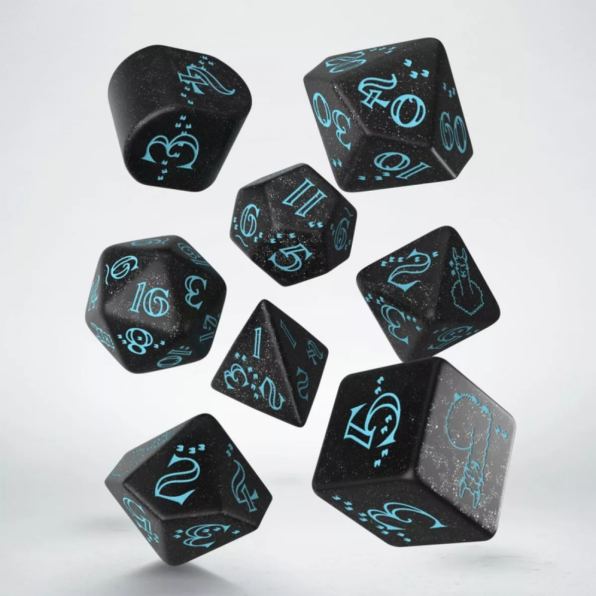 Універсальний набір, що складається з восьми стильних гральних кубиків - двох чотиригранників (один зі скругленими гранями та класичний), шестигранника, восьмигранника, десятигранника, десятигранника з числами другого розряду, дванадцятигранника і двадцятигранника.