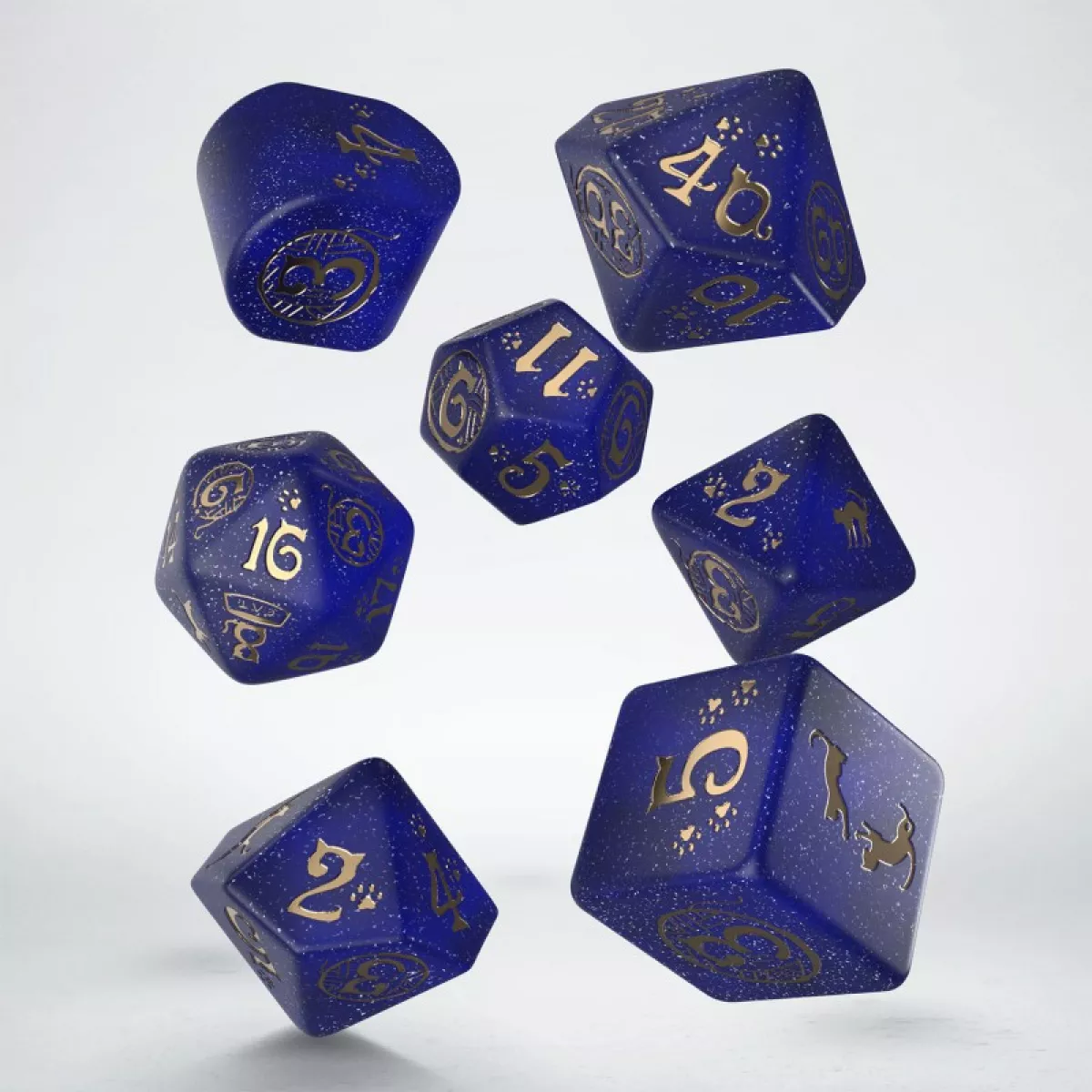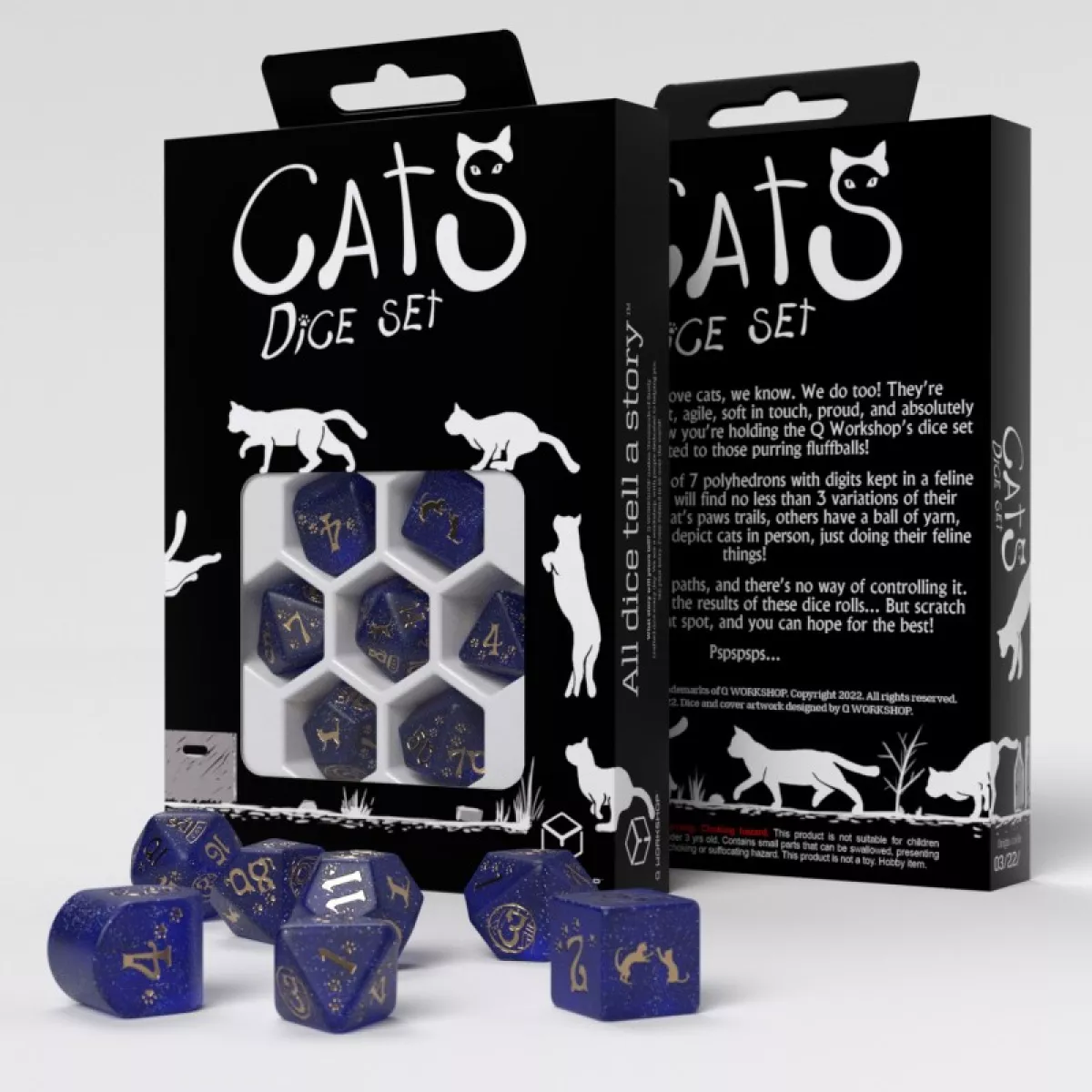 Ось сучасний набір кубиків CATS: Meowster. Темно-синє, як пізнє вечірнє небо, що виблискує крихітними вуглинками від багаття; ефект, який створюється матеріалом, змішаним із блискучим пилом. Гравюри пофарбовані в матове золото, що робить їх стильними та показує грайливих котів у їхніх повсякденних заняттях. Красиво, розбірливо, казково. Так, як вам подобається, так, як ви цього хочете, так, як вам це потрібно!