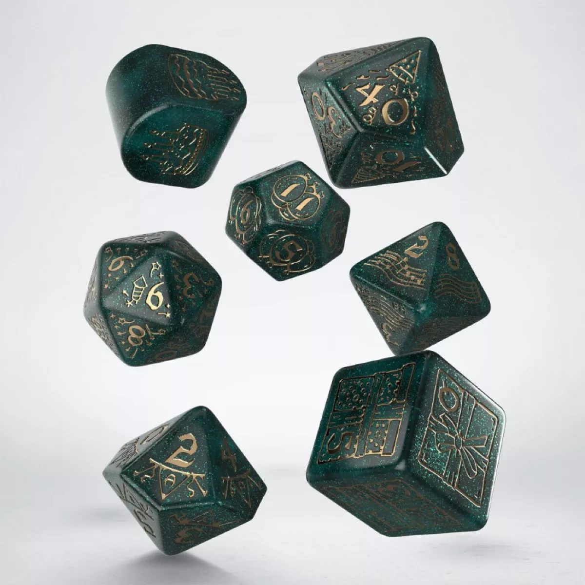 Універсальний набір, що складається з восьми стильних гральних кубиків - двох чотиригранників (один зі скругленими гранями та класичний), шестигранника, восьмигранника, десятигранника, десятигранника з числами другого розряду, дванадцятигранника і двадцятигранника.