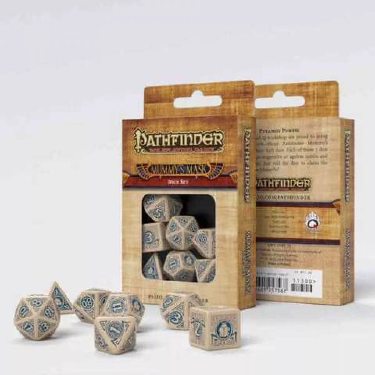 Назва "Mummy's Mask" не випадкова. Вона безпосередньо відсилає до однієї з найпопулярніших пригодницьких кампаній Pathfinder, що переносить гравців у давні землі, оповиті прокляттями мумій, загадками забутих богів та небезпеками піщаних пустель. Дизайн цих кубиків, хоча і є універсальним, ідеально доповнює цю тематику, викликаючи асоціації з пісками, що таять стародавні секрети, та величними гробницями, повними скарбів і пасток. Кожен кидок цими кубиками буде ніби відкривати нову сторінку у давньому манускрипті, сповненій загадок та випробувань.