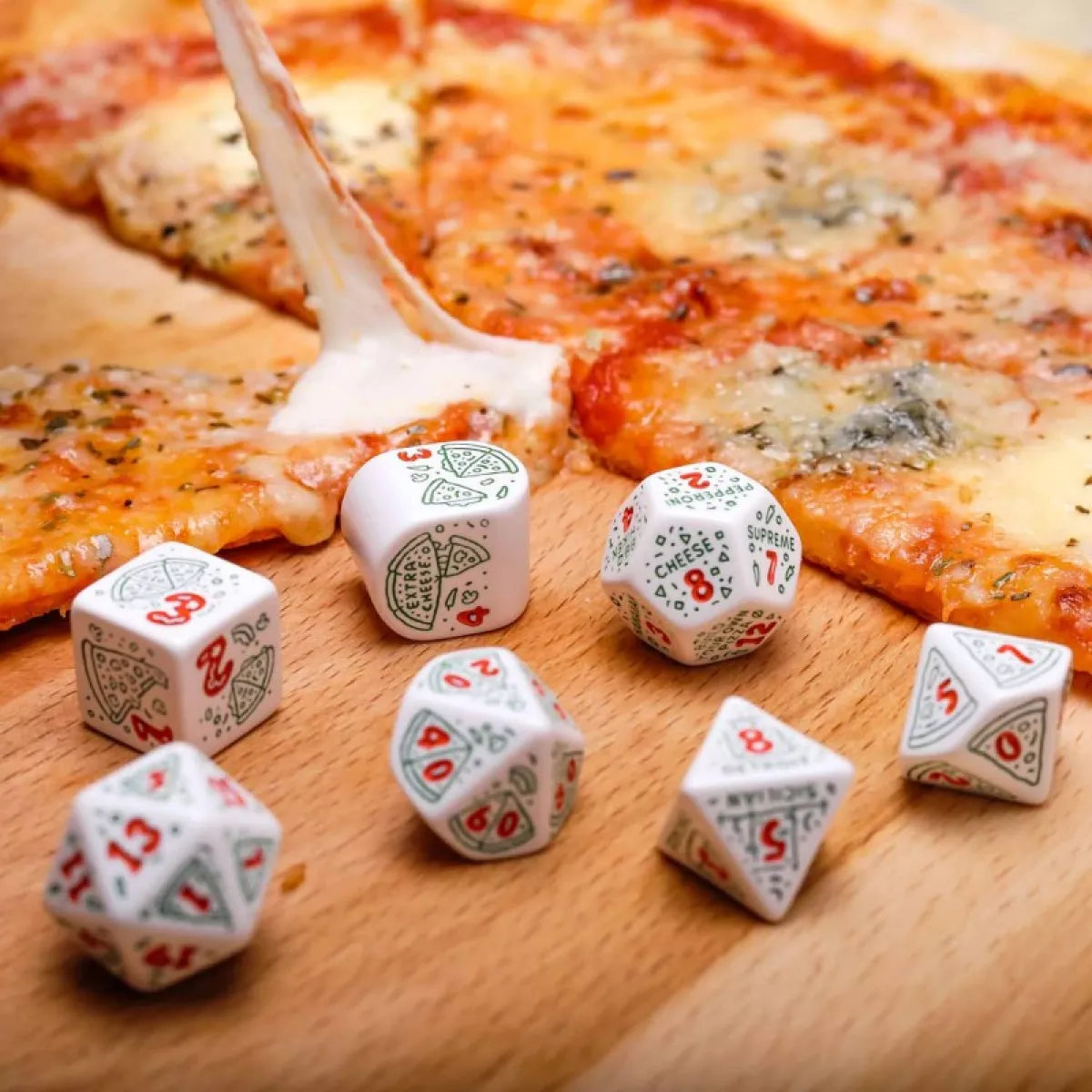 Ласкаво просимо до світу, де ваші настільні пригоди набувають особливого смаку з Набором кубиків Pizza Modern Dice Set: Pepperoni (7)! Цей унікальний універсальний набір з семи стильних гральних кубиків стане справжньою окрасою вашої колекції та незамінним атрибутом для будь-якої рольової гри. Забудьте про нудні та одноманітні кубики – з цим набором кожен кидок перетвориться на маленьке свято, що викликає апетит до перемог!
