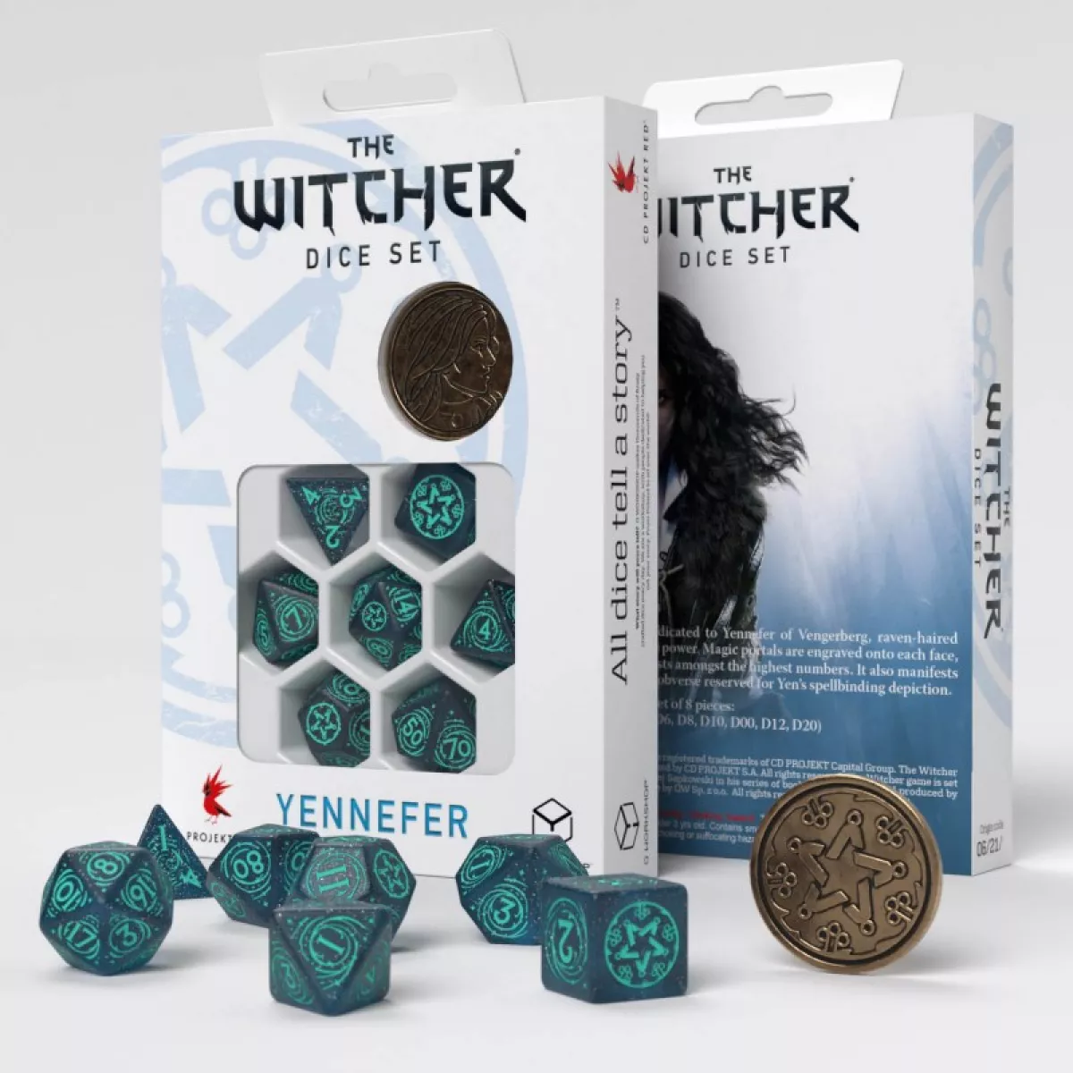 Саме йому присвячений цей спеціальний набір кубиків у кольорах зоряної ночі та бірюзи з чітким шрифтом цифр, гравіюванням, стилізованим під магічні портали, і найвищими гранями кубиків, прикрашеними символом обсидіанової зірки. На монеті, доданій до набору, також зображено цей символ на реверсі, тоді як на аверсі вирівнює бічний профіль красивого обличчя Єн.