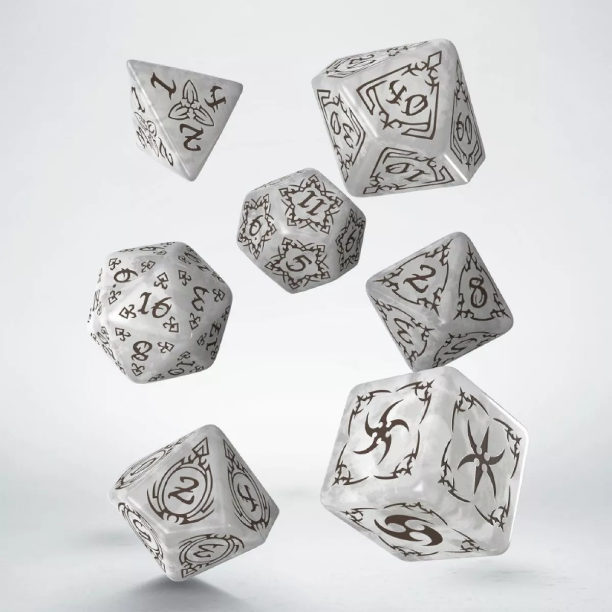 Універсальний набір, що складається з семи стильних гральних кубиків - чотиригранника, шестигранника, восьмигранника, десятигранника, десятигранника з числами другого розряду, дванадцятигранника і двадцятигранника.