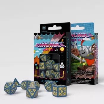 Аркадний синьо-жовтий набір кубиківQ WORKSHOP з гордістю представляє Arcade Dice Set — нашу данину тим часом, коли хлопчики та дівчатка на міцних велосипедах почали занурюватися в підземелля та перемагати драконів. Аркада була священним місцем для всіх геймерів - місцем зустрічей, дуелей і спілкуван..