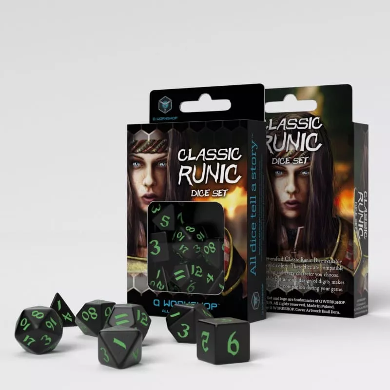 Набір кубиків Classic Runic Black & green Dice Set (7)