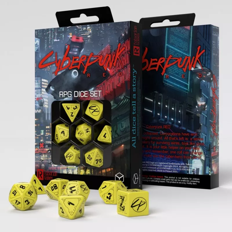 Пориньте у вируючий світ високих технологій, низького життя та постійної небезпеки з Набором кубиків Cyberpunk Red Dice Set: Danger Zone! Цей універсальний комплект із семи стильних гральних кубиків стане вашим вірним супутником у кожній сутичці, кожній хакерській операції та кожній афері у футурист..