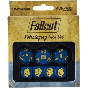 Набір кісток для настільної рольової гри FalloutFallout: The Roleplaying Game Dice Set — це набір стильних кастомних кісток, які ви можете використовувати під час гри в НРГ Fallout. Кістки ідентичні тим, що входять у «Fallout. Стартовий набір», але доступні для замовлення окремо.У комплекті: одна D2..