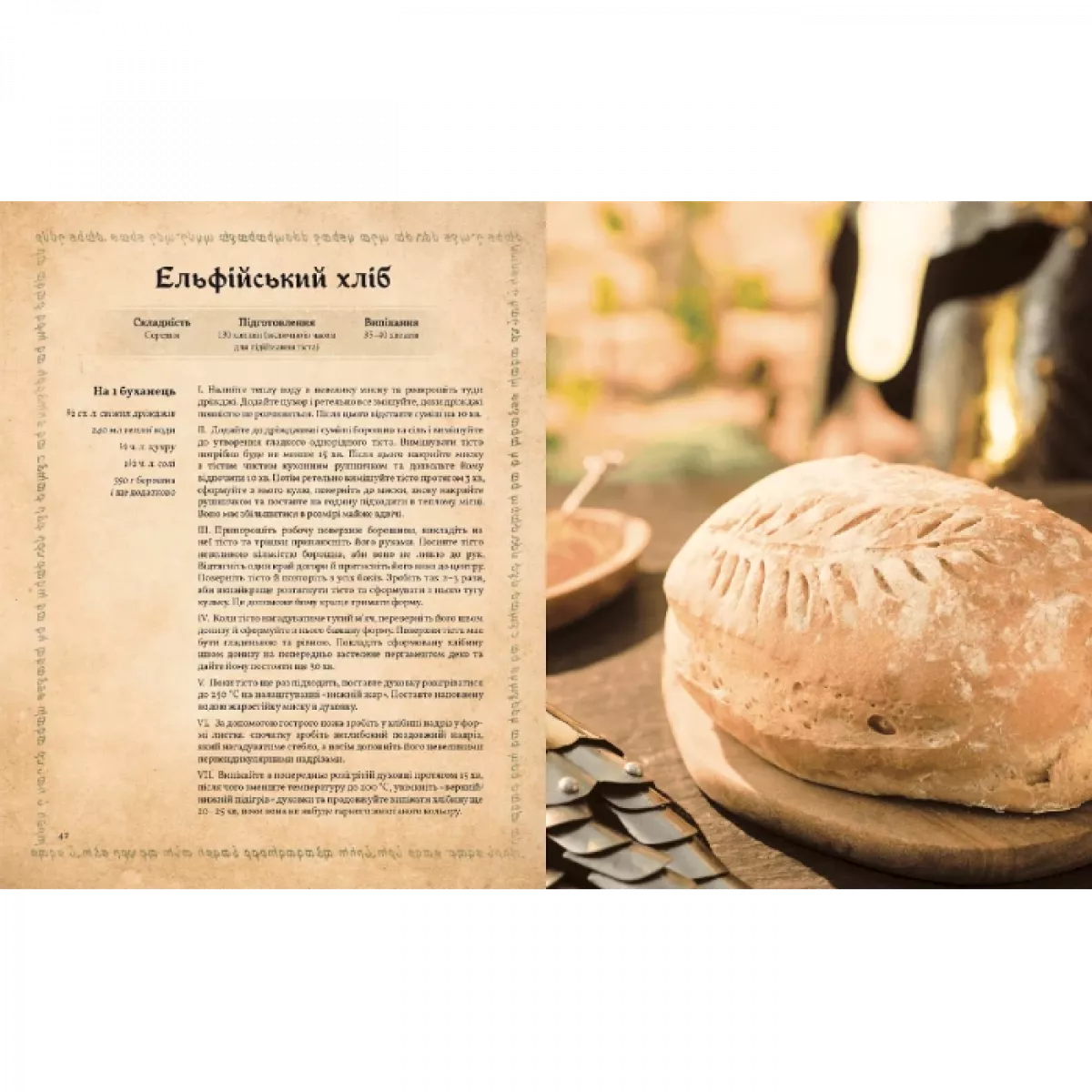 Для тих, хто цінує витонченість та легкість, книга пропонує поглянути на кулінарію ельфів. Довідайтеся, як приготувати Лембас – хліб подорожніх, що дарує силу та витривалість, а також інші вишукані страви з лісових дарів, фруктів та трав. Ці рецепти ідеально підійдуть для тих, хто прагне легкості та гармонії у своєму раціоні, надаючи перевагу натуральним інгредієнтам.