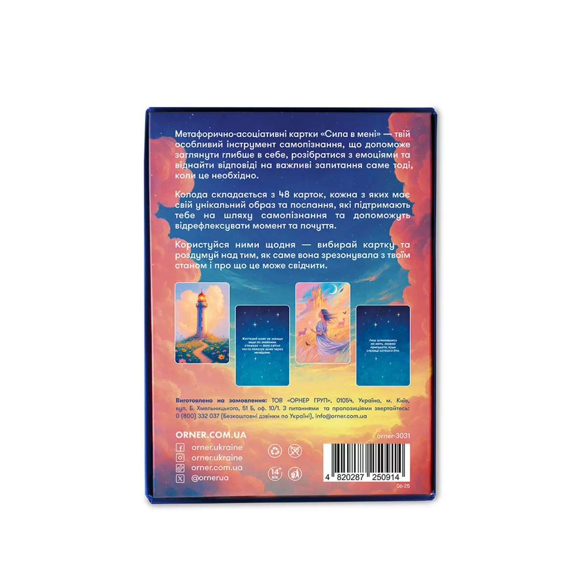 «Сила в мені» – це більше, ніж просто карти. Це ваш персональний помічник у розвитку емоційного інтелекту, підвищенні самооцінки, подоланні внутрішніх конфліктів та розкритті свого безмежного потенціалу. Вони стануть чудовим подарунком для тих, хто прагне самовдосконалення, шукає внутрішню гармонію або працює у сфері психології та коучингу. Дозвольте цим картам відкрити вам двері до вашої внутрішньої сили, що чекає на те, щоб бути звільненою.