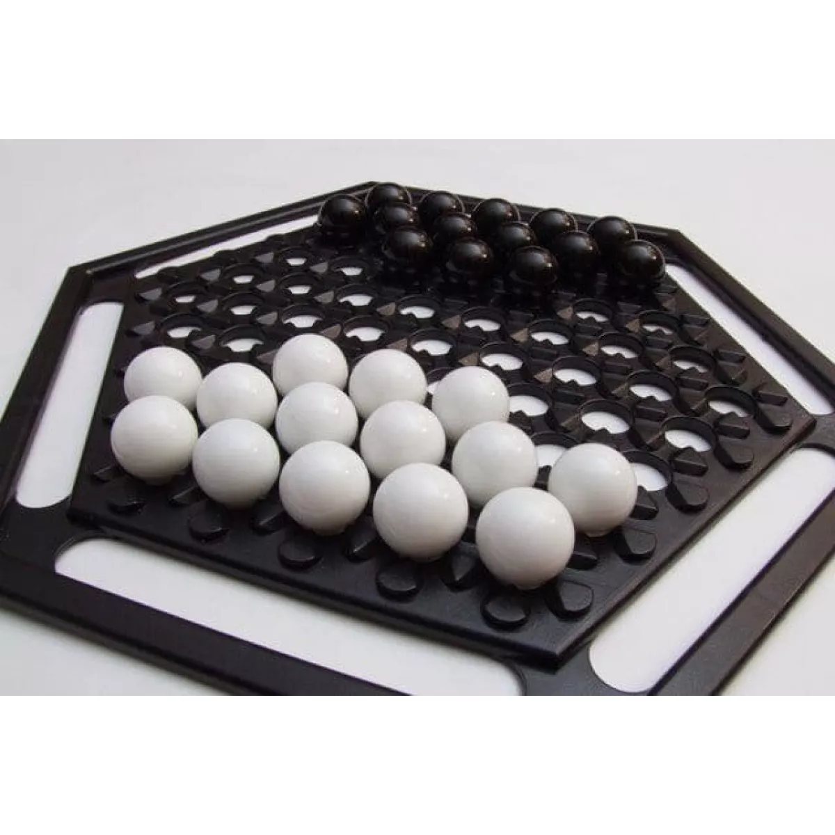 Чудова класика абстрактної гри для двох, Abalone запрошує вас спробувати викинути шість куль вашого суперника з шестикутної дошки, штовхаючи їх своїми. Гра захоплення та протистояння з глобальним успіхом, Abalone протягом кількох років була предметом турнірів та офіційних змагань і була обрана As d’Or ?? Гра десятиліття на Каннському міжнародному фестивалі ігор. Гравці можуть виконати одну дію (або хід) за хід. У свою чергу, ви зможете перемістити від одного до трьох м’ячів зі свого боку на одне чи кілька вільних місць у тому ж напрямку або виконати рух «Суміто», штовхаючи протилежні м’ячі, коли ви перебуваєте в позиції чисельної переваги. Добре розраховуйте свої удари, тому що будь-який зроблений рух не можна змінити. Цю неймовірну настільну гру буде надіслано в чудовій упаковці, і, перш ніж ви це усвідомите, вона буде гордо сидіти на вашому столі та отримувати захоплені коментарі від усіх ваших рідних, друзів і колег!