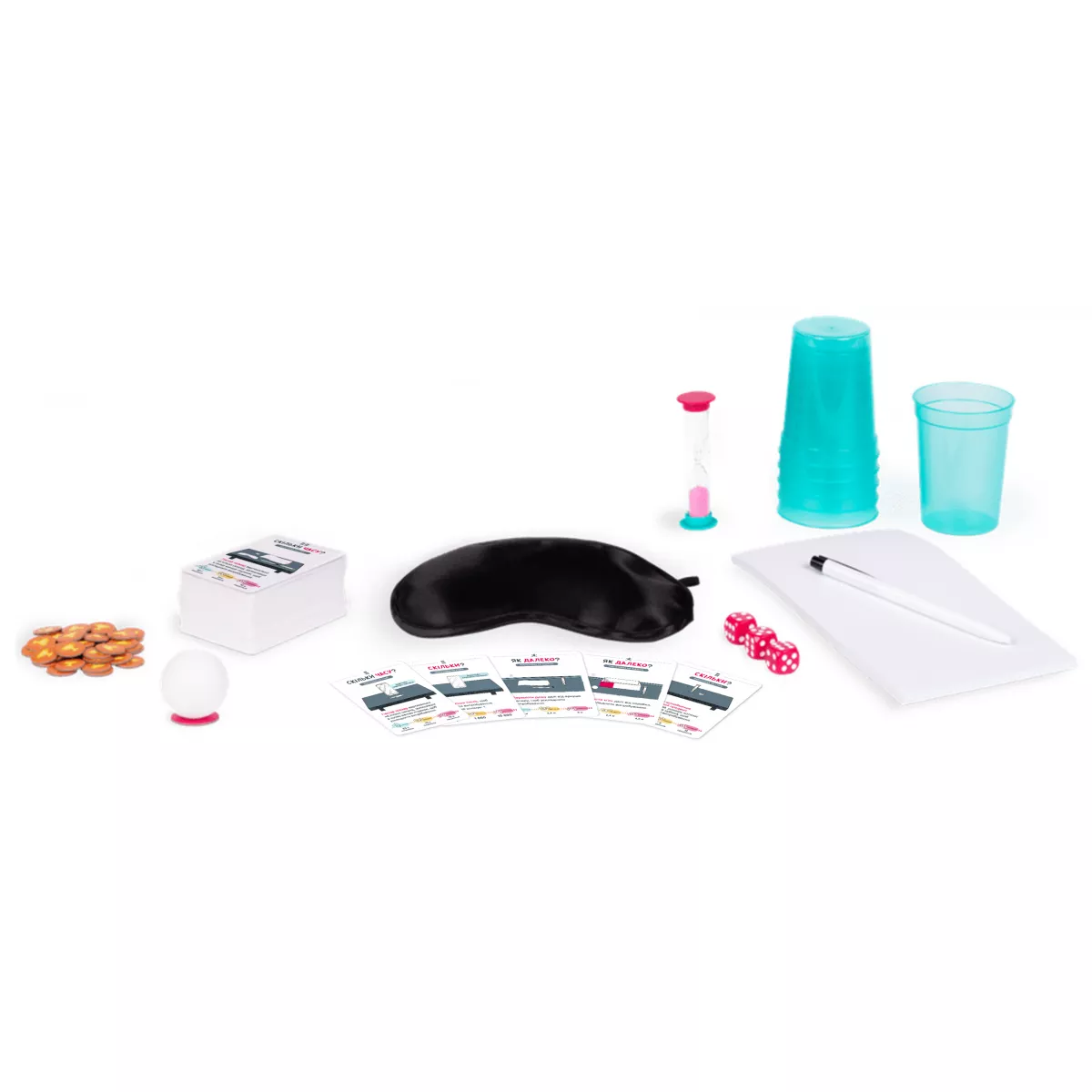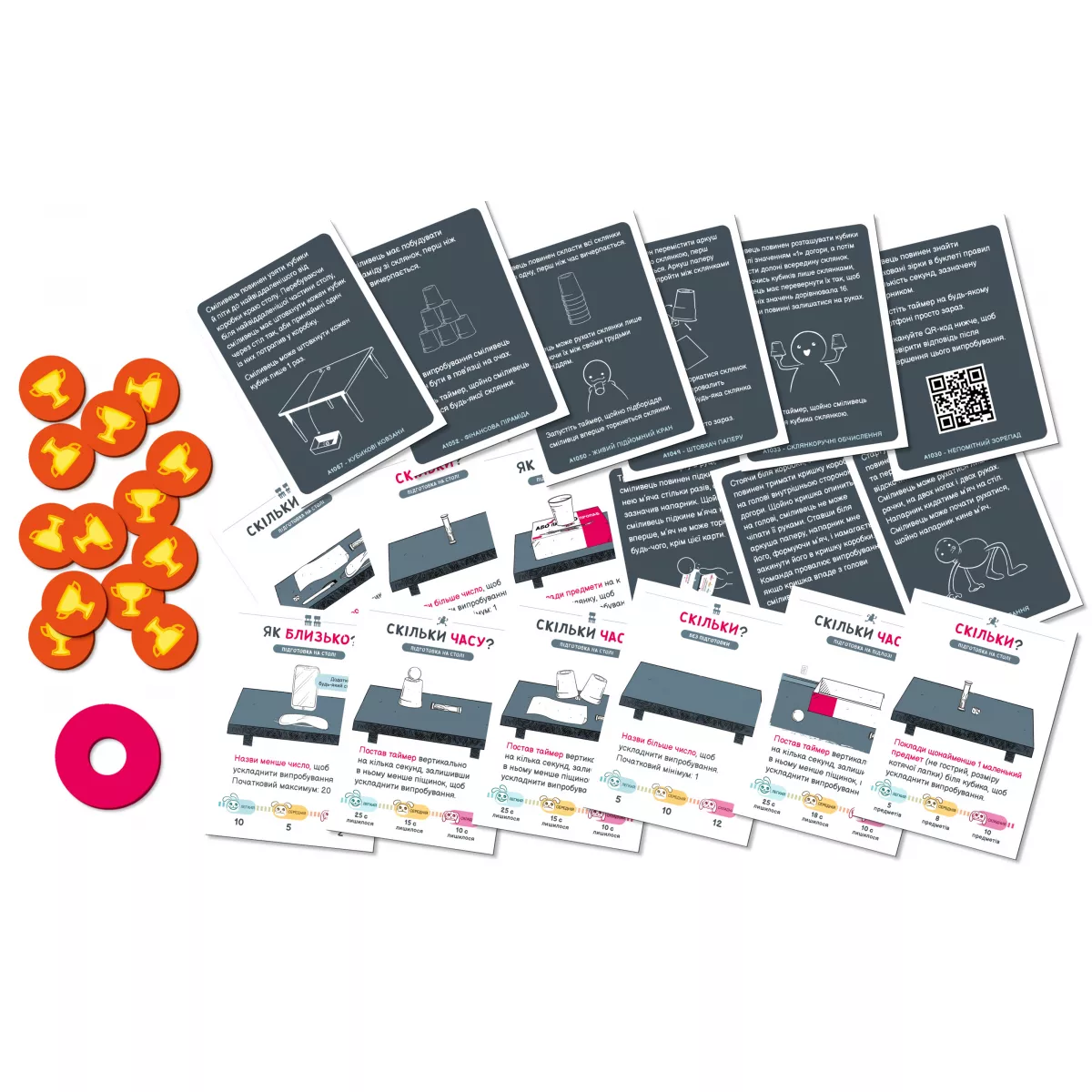 У грі є 150 завдань, для яких використовуються реквізити, як-от пов'язка на очі, чашки та м'ячики, кубики, ручки та інше — усе це входить до комплекту.