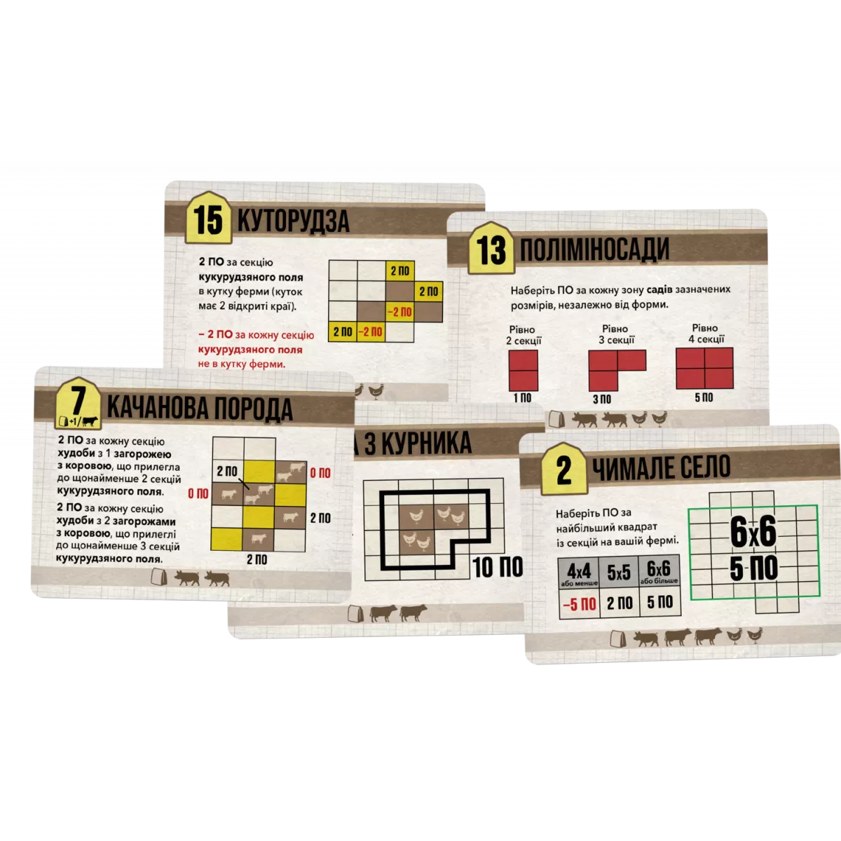 Не можна викладати нову карту так, щоб вона накривала карту повністю, підкладати нову карту під іншу карту ферми та викладати нову карту так, щоб вона прилягала до іншої карти в зоні будівництва тільки кутом.