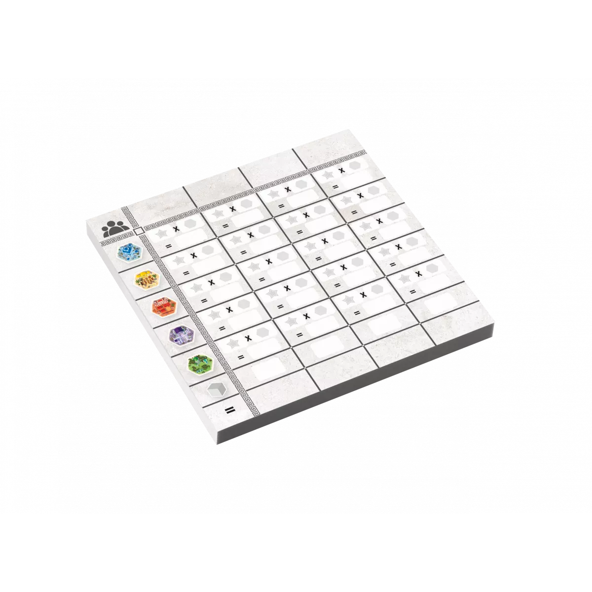 У коробці 61 плитка кварталів, 4 початкові плитки кварталів, 4 пам’ятки гравця, 1 блокнот для підрахунку очок, 1 фішка головного архітектора, 40 кубиків каменю, Правила гри