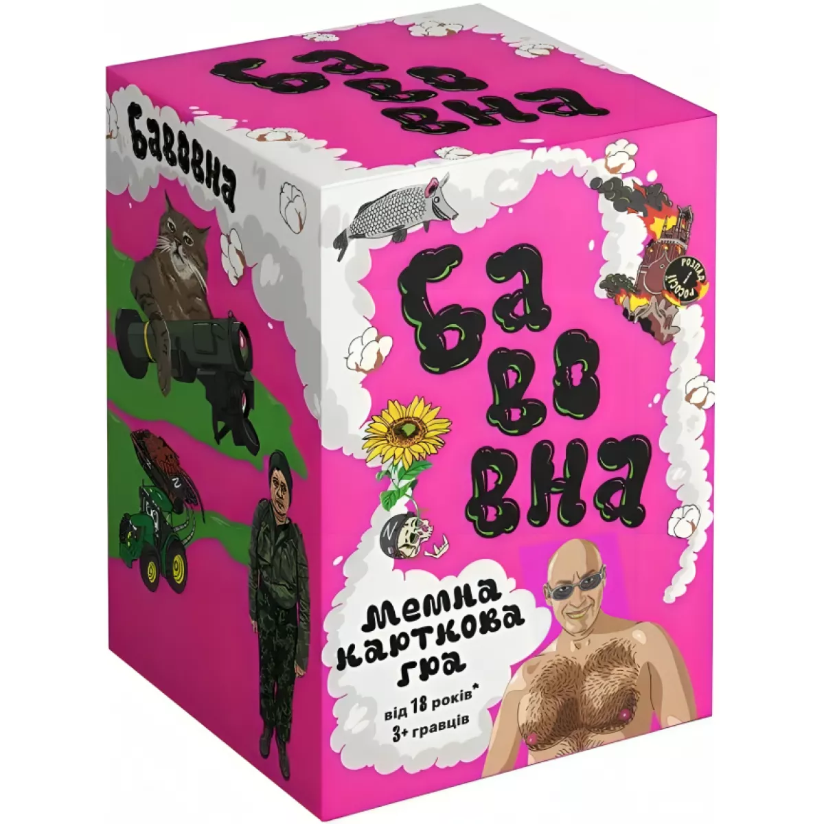 Досить під час повітряних тривог дивитися смішні меми в соцмережах. Час самим їх вигадувати! З настільною грою Бавовна ви зможете не лише згадати всі кумедні приколи, придумані незламними українцями до і після початку повномасштабної війни з росіянами, але й взяти участь у їхньому створенні! Ви зможете «наробити» мільйон нових мемасиків у пориві азарту та любові до батьківщини. Достатньо роздати бандерівцям віком старше 18 років по 7 карт відомих мемів у картинках, а ведучому — зачитати карту ситуації. Той, хто запропонує найсмішніше доповнення до озвученої ситуації, отримає шану, повагу та переможне очко. А всі інші зможуть абсолютно по-новому подивитися на нібито відомі меми, завдяки кумедним і неочікуваним поєднанням картинок і тексту. Звичайно, перемагає у грі (як і у війні) Україна, але всі гравці отримають масу задоволення від процесу. Компактна і дуже весела гра для компанії Бавовна поміститься як у тривожну валізку, так і в якийсь підсумок на РПС. Вона доведе ваш рівень русофобії до достатнього, а рівень настрою — до чудового. Радимо не тримати її надто близько до джерел вогню, а то буде бавовна. Краще відкрити та швидше використовувати за призначенням!