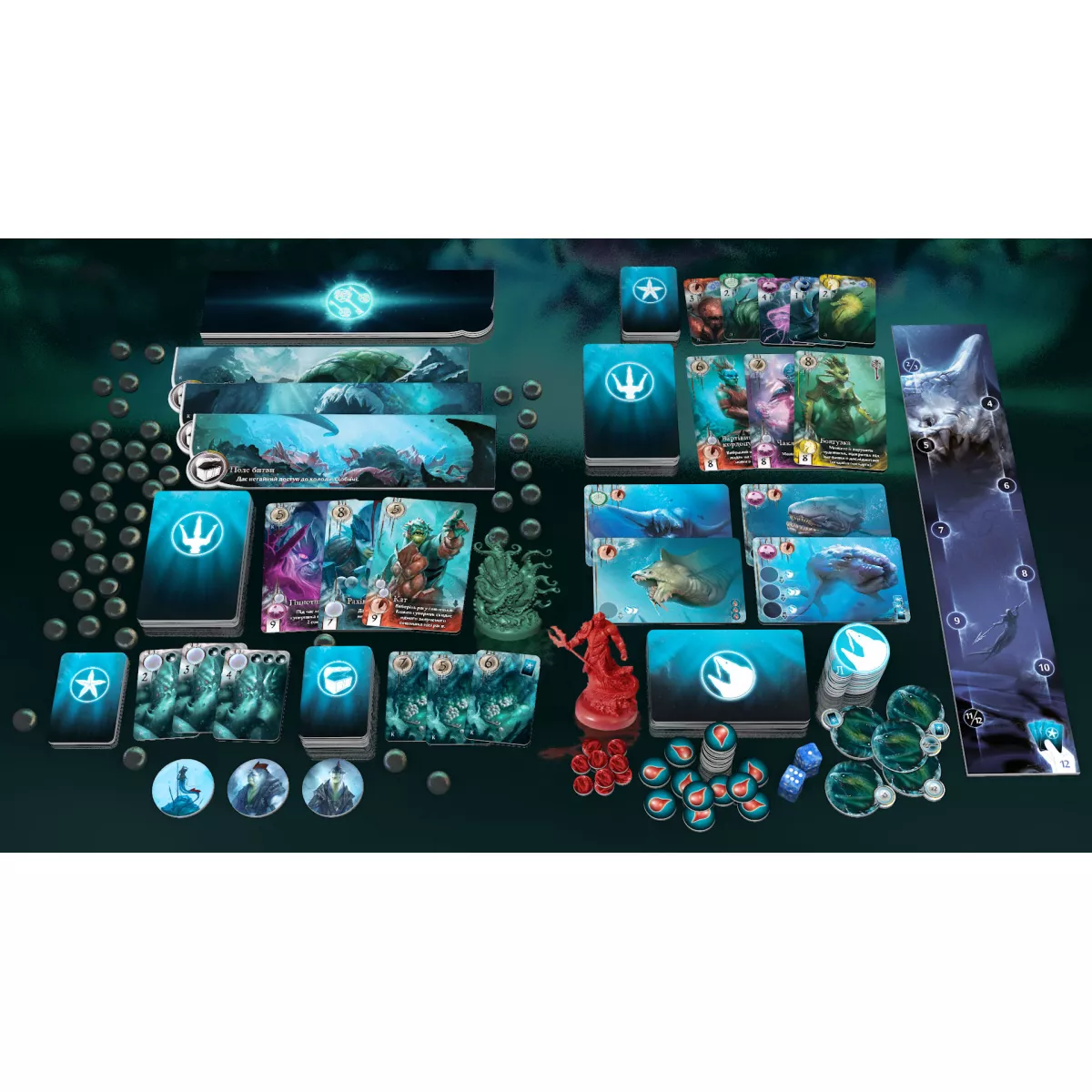 У коробці Кракен -, 1 Книжка правил, 7 карт союзників, 18 карт лордів, 3 жетони вартових, 6 плиток місцин, 25 карт здобичи, 25 небулісів, 1 фігурка кракена, 1 прозора чаша, , Левіафан -, 1 книжка правил, 1 поле кордону, 20 карт левіафанів, 10 карт лордів, 21 карта союзників і 3 карти чудовиськ, 26 жетонів поранень, 10 маркерів здоров'я, 20 жетонів чудовиськ, 1 фігурка Лиха Безодні, 2 кубики, 1 прозора пластикова чаша