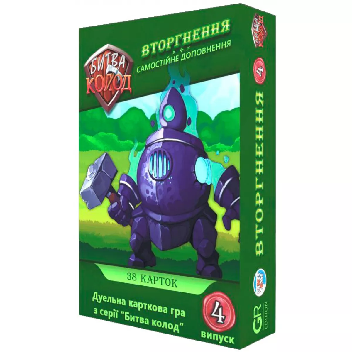 «Битва колод. Вторгнення» - самостійна дуельна карткова гра, що може бути поєднана з іншими наборами серії для епічних битв між двома гравцями, або ж у соло-режимі. Стильні малюнки, ностальгічна механіка та нарешті український текст на картах.