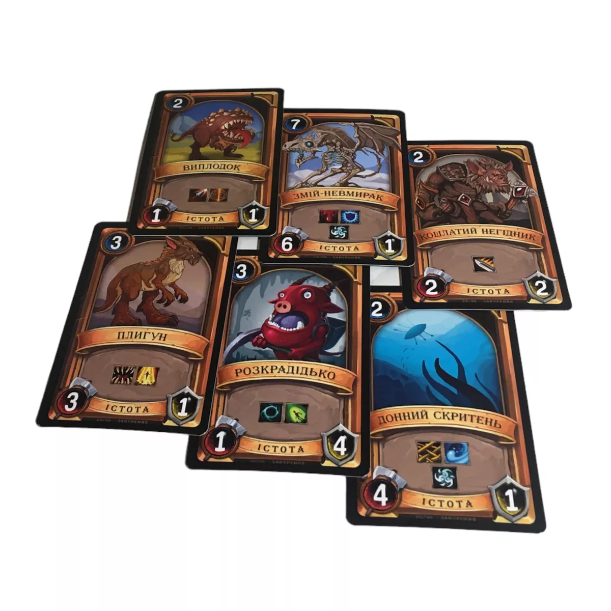 «Битва колод. Занурення» - самостійна дуельна карткова гра, що може бути поєднана з іншими наборами серії для епічних битв між двома гравцями, або ж у соло-режимі. Стильні малюнки, ностальгічна механіка та нарешті український текст на картах.