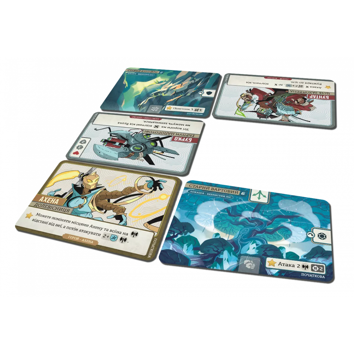 Набори карт героїв. Кожен гравець використовує набір карт героя, який складається з карт воїнів, здоров’я та властивостей.