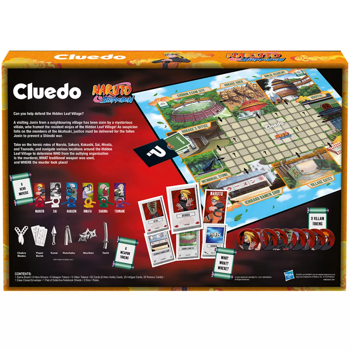 Не пропустіть шанс зануритися у світ таємниць разом з Наруто та його друзями! Зберіть команду шинобі, використовуйте свої дедуктивні навички та станьте кращим детективом Конохи. Купіть настільну гру Cluedo: Naruto Shippuden прямо зараз і розпочніть своє захопливе розслідування!