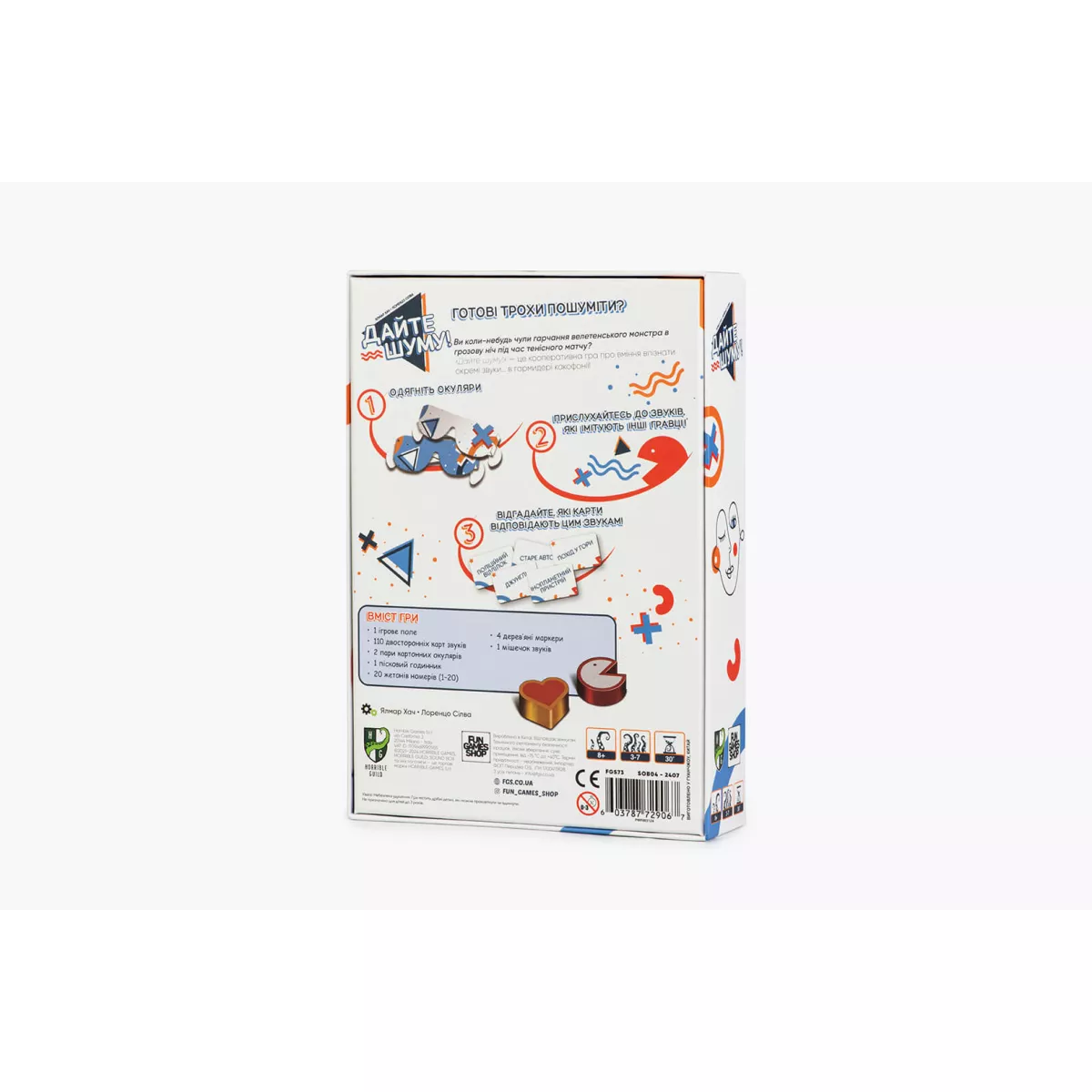 «Дайте шуму!» — кооперативний патігейм, де у справжній какофонії ви повинні знайти підказки. Гравці одночасно імітують різноманітні звуки, поки слухач має здогадатися, які саме поняття відтворює кожен з учасників. Кожен раунд перетворюється на феєричне шоу, де вам доведеться проявити свою креативність та уяву.