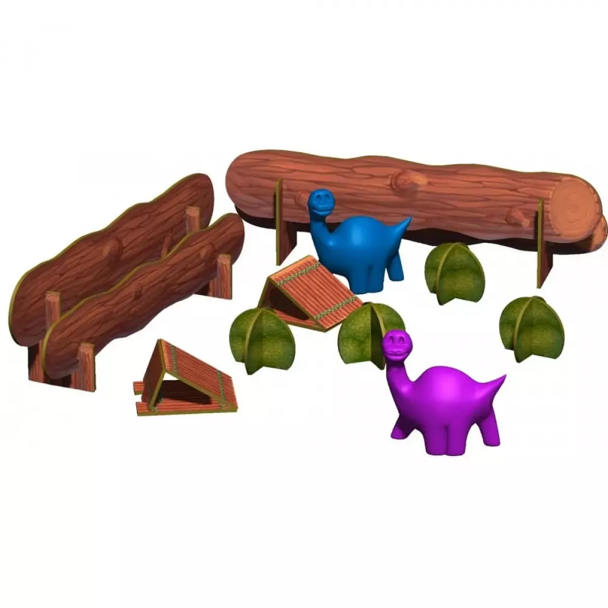 • Розпізнавання кольорів та форм: Різнокольорові елементи гри та фігурки динозаврів допомагають у вивченні та закріпленні знань про кольори та прості геометричні форми.