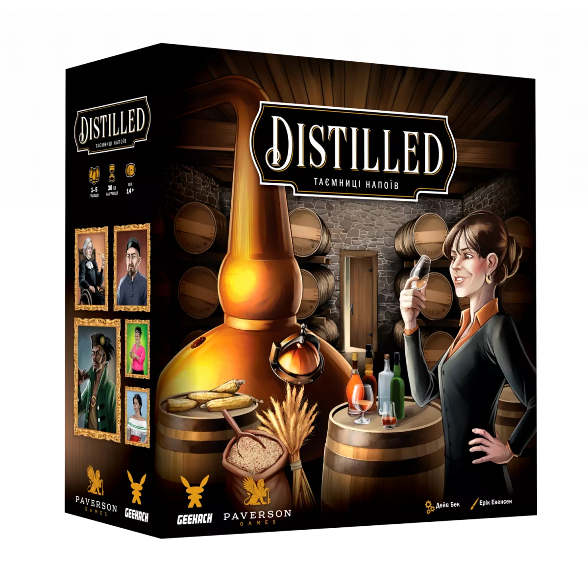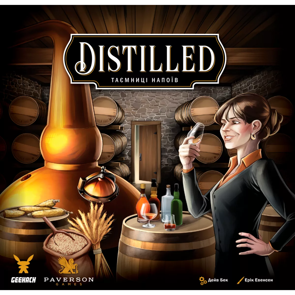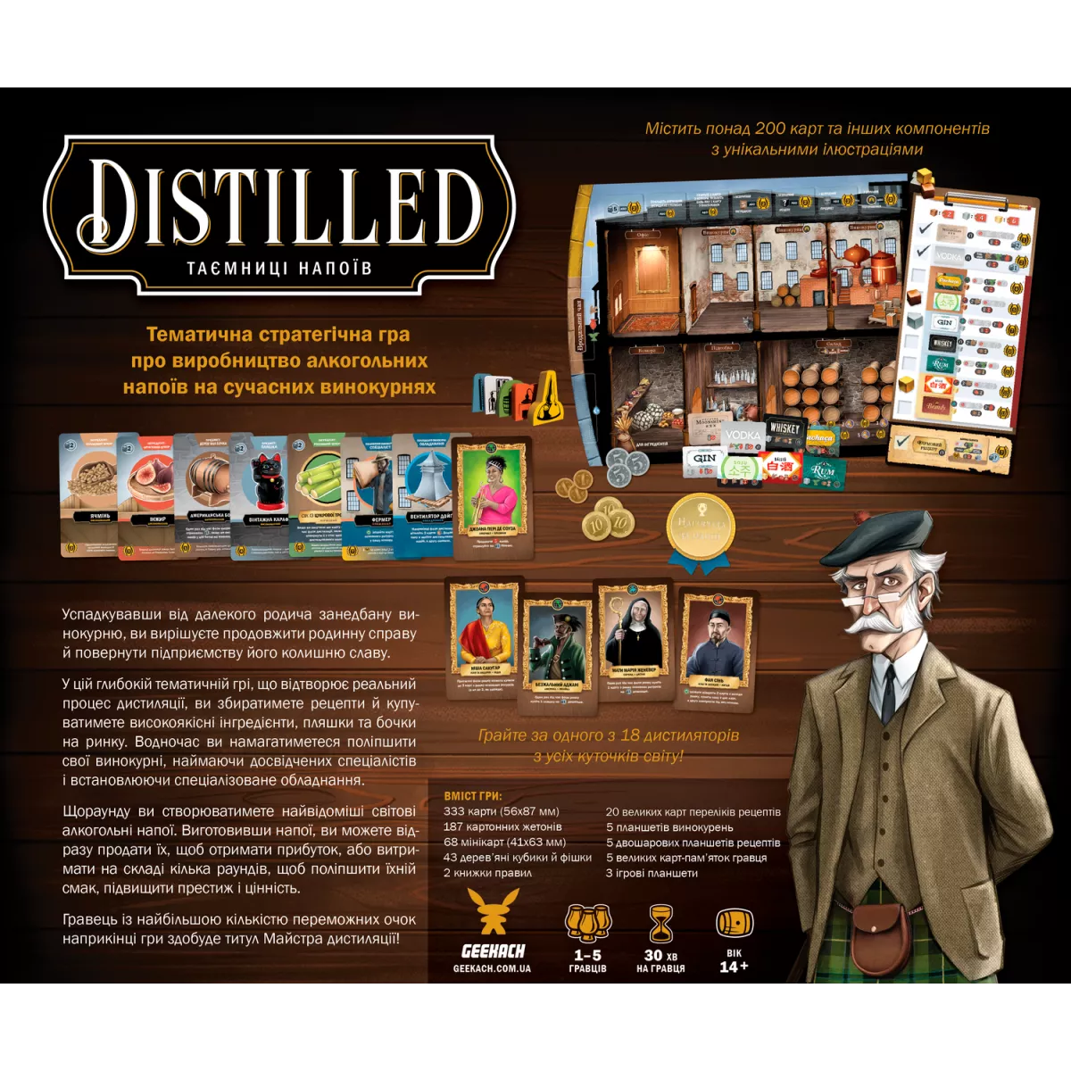 Всім відомо, що справді якісний алкоголь - це мистецтво! Віскі, викоханий у дерев’яних бочках, витриманий роками, аби міг увібрати у себе отой букет аромату, і розлитий по крафтових пляшках, та згодом відкоркований одного затишного вечора - це саме той «нектар та  амброзія», який виготовляють справжні митці! Якщо ви разом з друзями відчуваєте себе саме такими поціновувачами, або ж  маєте бажання ще тільки доєднатися до таїнства дистиляції міцних напоїв, то гра Distilled. Таємниці напоїв точно стане вам у нагоді! Distilled. Таємниці напоїв - це євростратегія для компанії від 1 до 5 людей, у якій за годину-дві ви перевтілитеся у спадкоємця старенької винокурні, яку необхідно Make Great Again. Яким чином ви будете створювати алкоголь? На ваші плечі лягає відповідальність за розбудову власної винокурні, винаймання спеціалістів, придбання ліцензій на різні напої, підготовку інгредієнтів, як звичайних, так й унікальних, високоякісних, ну й, безпосередньо, сама дистиляція. І от тут починається найцікавіше! Адже для гарного напою потрібні чітко обрані та виважені інгредієнти. Але через механіку випадковості у грі може статися таке, що потрібні цукри не вступлять у взаємодію в дистиляційному чані. З ким не буває такого, що впустив ложку на підлогу, коли розмішував суміш, або стільки куштував напій у процесі, що для якісного продукту інгредієнтів і не лишилося… Ну нічого, наклеймо етикетку «самогон», таке теж має право на життя! Якщо ж все пішло за планом, результат вийшов ідеальний, а на складі були годні діжки, то саме час напою набратися сил на темному складі, бо з кожним роком він стає все більш ароматним та коштовним! Майстер дистиляції! Гарно ж звучить таке звання? Аби його здобути, потрібно набрати найбільше переможних очок, продаючи алкоголь найвищого гатунку, отримуючи міжнародні нагороди та бонуси за естетику напоїв! Гарне ремесло не любить поспіху, але й причин зволікати нема! Додавайте гру Distilled. Таємниці напоїв до вашої ігроколекції та продемонструйте всім свою майстерність у виготовленні благородного алкоголю! І головне, пам’ятайте: споживайте відповідально! Якщо ж ви бажаєте трохи знизити градус напою - зверніть увагу на затишні виноградники Італії у мальовничій євростратегії Виноробство.