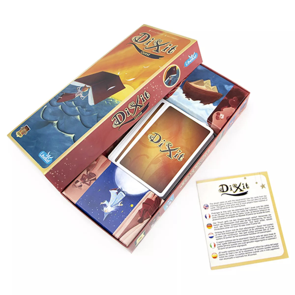 Увага! Це доповнення. Для гри знадобиться базова гра Діксіт або розширена версія Діксіт Одіссея.   Кожен з нас хоча б раз у житті мріяв. У дитинстві ми мріяли про новий блискучому велосипеді, красивої ляльки і, звичайно, швидше стати дорослим. У роки навчання в своїх мріях ми здавали іспити, ні разу не заглянувши конспект. Подорослішавши, ми також не перестаємо мріяти про гарну високо оплачуваної роботи, сімейне щастя і хорошого життя для наших дітей. Мрії не зникають, вони йдуть з нами пліч-о-пліч. Ми можемо рости, дорослішати, але добрі думки завжди залишаються з нами. Тому ми ніколи не перестанемо ні мріяти, ні вірити в казку, ні збиратися разом для того, щоб зіграти в чудовий Діксіт і ще трохи пофантазувати. Так чого ж ви чекаєте? Давайте відкриємо ще одну чарівну двері і вирушимо в дорогу. Але не забудьте прихопити з собою рюкзак гарного настрою і мішок посмішок, щоб поділитися ними з друзями. Набір Діксіт 2: Пригода (Dixit 2. Quest) додає до популярної серії настільних ігор Dixit ще 84 абсолютно нові карти з фантастичними ілюстраціями. Як і в попередніх частинах, це не просто набір карт... це ще один набір маленьких творів мистецтва, ще одна дивна пригода у країні фантазії, в яку ви зможете відправитися в компанії друзів. Для цього досить замінити комплект карт, що входить в базову гру Діксіт або змішати карти з даного набору в колоду карт базової гри.