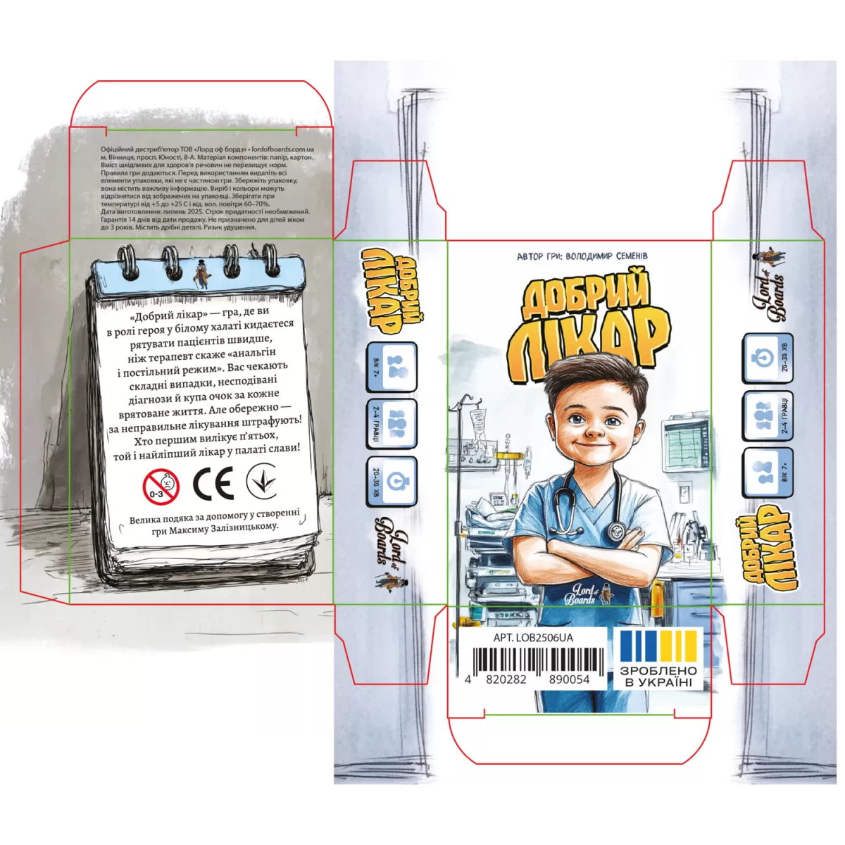 У коробці настільної гри «Добрий лікар» ви знайдете все необхідне, щоб розпочати свою медичну практику: