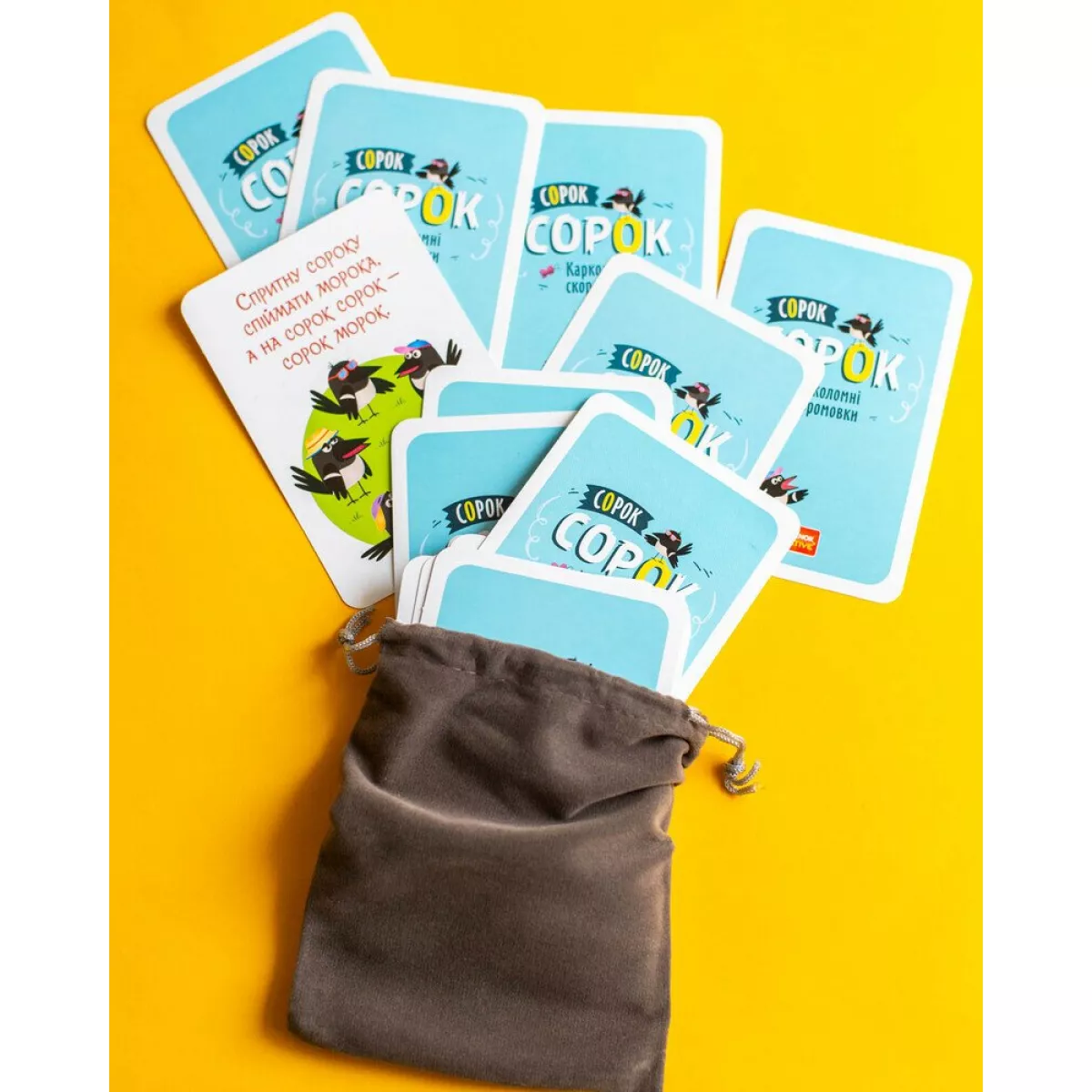 У світі, де цифрові розваги часто замінюють живе спілкування, настільні ігри повертають нас до незабутніх моментів, проведених разом. "Сорок сорок" не просто гра, це місток, що єднає покоління за одним столом. Від 2 до 6 гравців можуть одночасно зануритися у вир скоромовок, що робить її чудовим вибором як для невеликого сімейного кола, так і для гамірної дитячої вечірки. Партія триває всього близько 30 хвилин, що дозволяє легко вписати її навіть у найщільніший графік. А завдяки компактному розміру та мішечку для карт, гру зручно брати з собою в подорожі, на відпочинок чи до друзів. Українська мова гри підтримує та розвиває рідну мову, роблячи процес навчання ще більш цінним та актуальним.