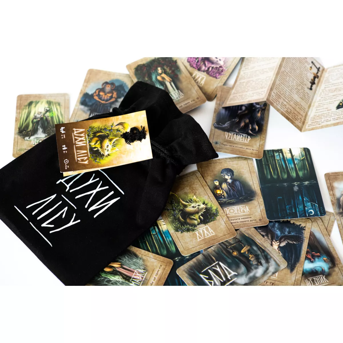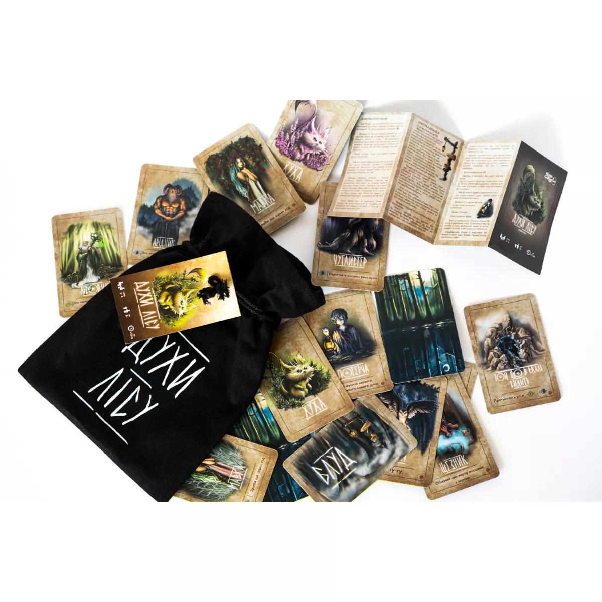На початку гри дев'ять карт духів лісу - мавки, чугайстри, хухи, Лісовик і Арідник - викладаються взакриту квадратом 3 на 3.