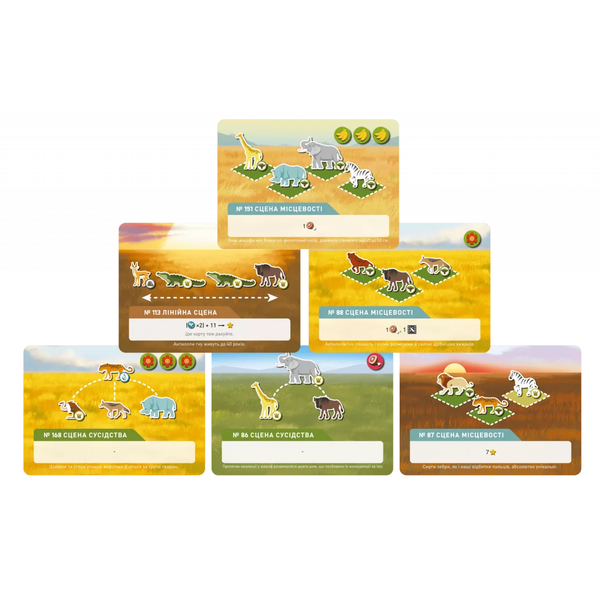 Щоб отримати переможні очки, гравець повинен завершити Картки сцен, розмістивши тварин на Головній дошці за тим самим шаблоном, що зображений на картках.