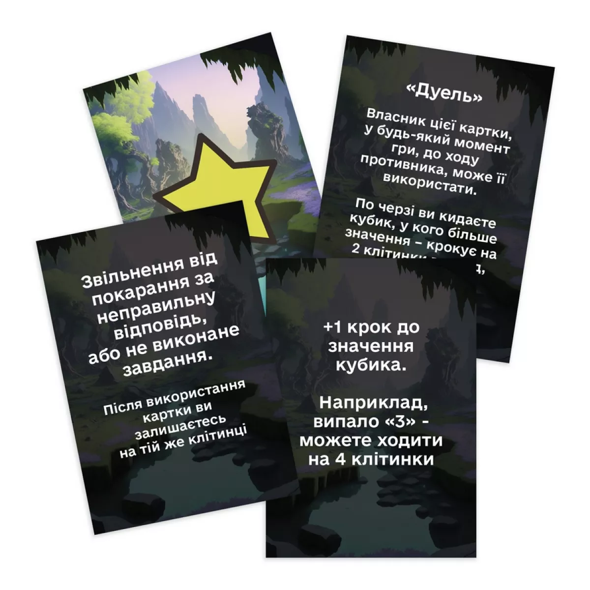 Мета гри – першим дістатися до фінішу. Кидок кубика визначає кількість клітинок які гравець проходить у свій хід. Відповідно до клітинки, на якій він зупинився, гравець дістає картку завдання, запитання або бонусу. Відповівши на питання або виконавши завдання, гравець має змогу рухатись далі, а бонусні карти допомагають під час гри – звільняють від покарань, дають додатковий крок, тощо.