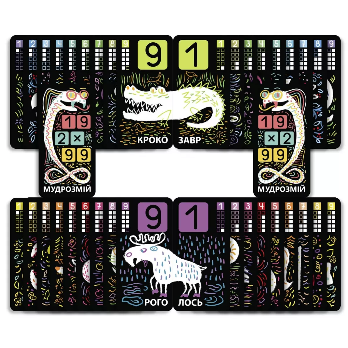 Хто сильніший: Голко-Браз чи Барво-Лис? Мерщій викладай картки і визначай найсильнішого дивозвіра, але пам’ятай, Мудрозмій може несподівано з’явитись та проявити свою силу. В коробці 36 парних карток з числами від 1 до 9 та пара Мудрозміїв. А також три веселих гри, де діти складатимуть дивозвірів та визначатимуть їх силу. Дивозвірі допоможуть дітям засвоїти додавання в межах 20, порівняння і додавання двоцифрових чисел та вивчити табличку множення.