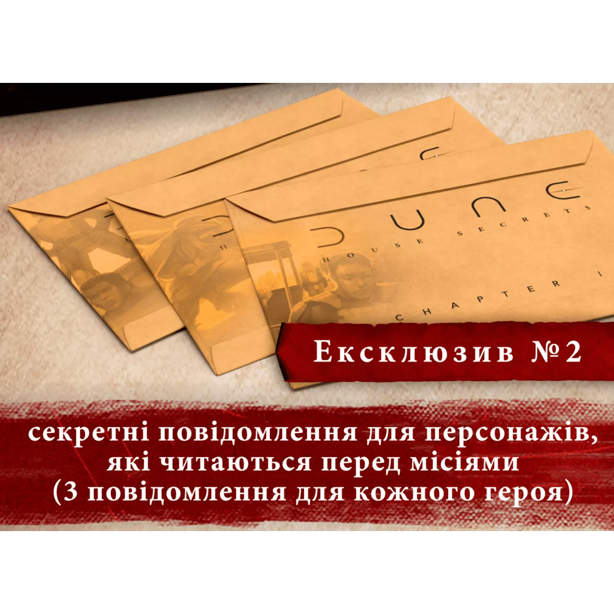 Увага! Настільна гра Ексклюзивні бонуси для гри Дюна. Таємниці Домів це доповнення. Для гри вам знадобиться базова версія:! Настільна гра Дюна. Таємниці Домів (Dune: House Secrets)