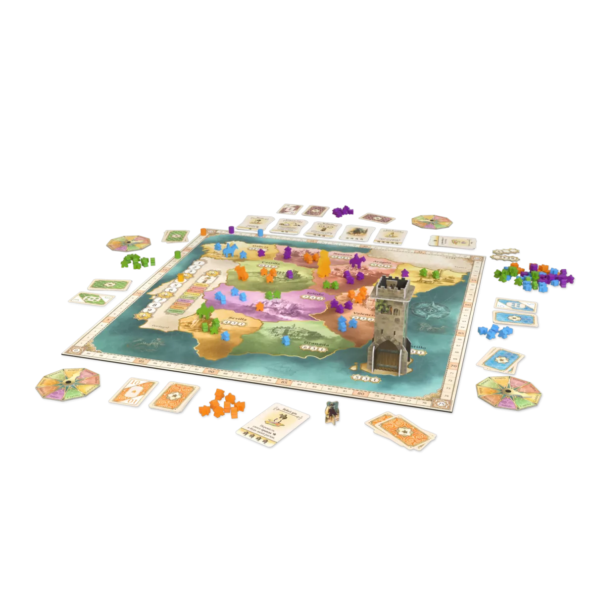Спершу гравці беруть диски вибору провінцій і таємно встановлюють стрілку на одній із них - до неї їхні кабальєро вирушать із Кастилії. Покладіть диски долілиць.