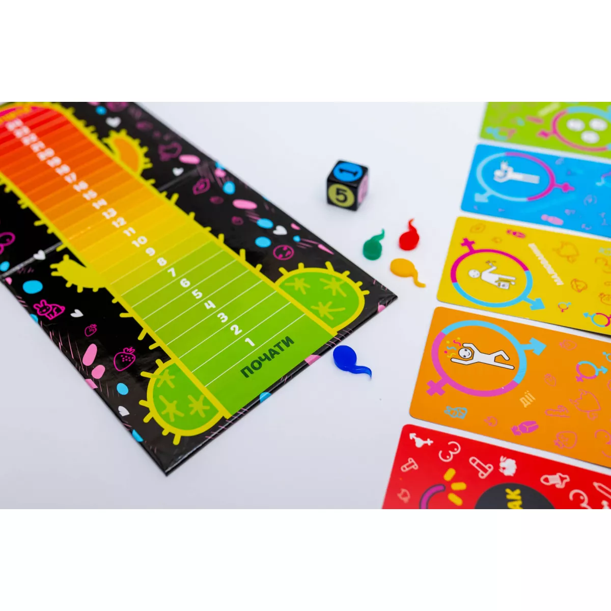 У коробці ігрове поле , 176 карток (більше 600 слів і виразів) , 4 фішки , специфічний кубик , правила гри
