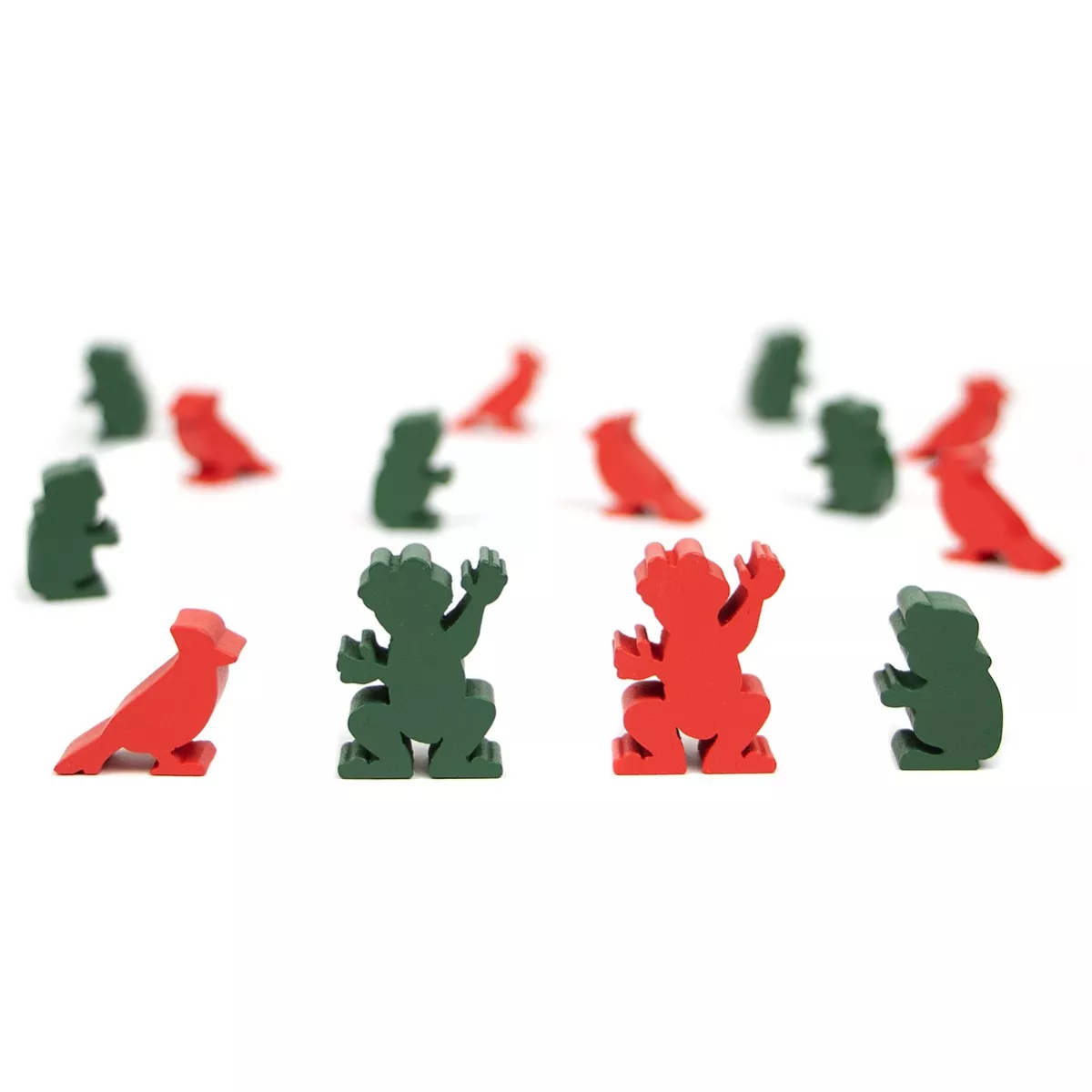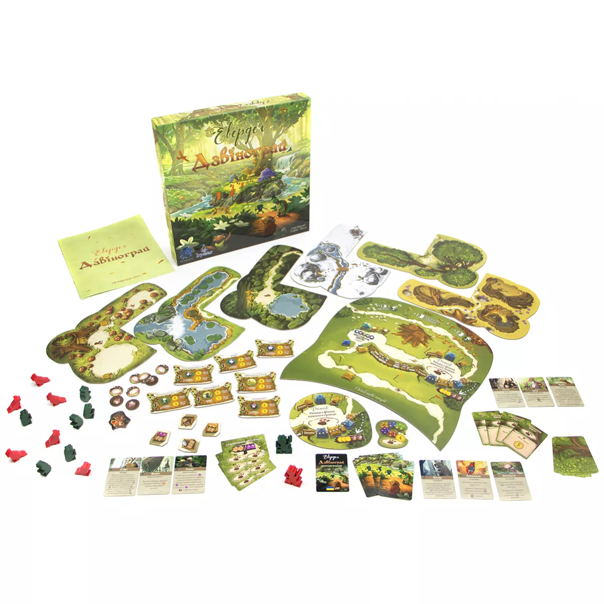 У коробці поле Дзвінограю, планшет ринку, 6 планшетів гравців, 7 стрічок нагород, тайл фестивалю квітів, 9 карт особливих подій, 4 карти лісу, 15 карт здібностей, жетон Бруднолапа, 8 жетонів Аксолотлів, 4 жетони ринку, 12 звірят (6 кардиналів та 6 жаб) та 2 жаби-посла (для доповнення «Евердел. Перловоддя»)