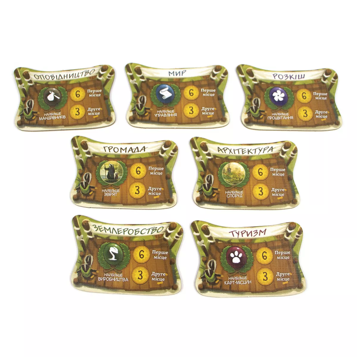 Стрічки нагород. Ви отримуватимете додаткові очки за найбільшу кількість типу карт, вказаного на стрічці нагород;