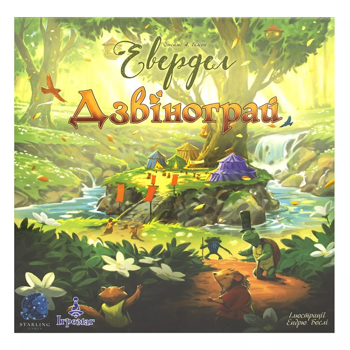 «Евердел. Дзвінограй» – це доповнення до красивого атмосферного євро про будівництво звірячої цивілізації «Евердел». Серед нововведень у доповненні варто відзначити поле Дзвінограю, яким можна замінити Вседрево з базової гри, правила гри для 5-6 учасників, особливі здібності та планшети гравців, стрічки нагород і нові події.