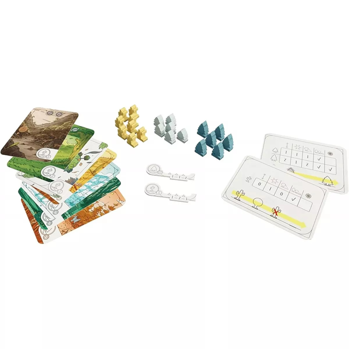 У коробці 7 карток біомів з ефектом сили росту малих сосен;, 7 карток біомів з ефектом сили кактусів;, 15 фішок малих сосен;, 23 фішки великих сосен;, 34 фішки кактусів;, 4 жетони сили росту малих сосен;, 4 жетони сили кактусів;, 2 підказки гравця;, правила.