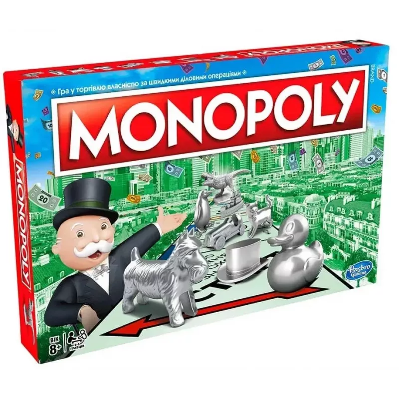 Класична Монополія оновлена українська версія купити в магазині Geekach ShopОновлена версія класичної "Монополії" українською мовою! Фанатів чекає подарунок у вигляді двох нових колекційних фішок. Тепер їх стало 8 - Скотч-тер'єр, Тиранозавр, Капелюх, Каченя, Автомобіль, Лінкор, Кішка і Пінгвін.Моноп..