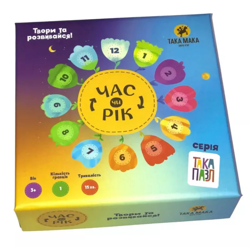 Ласкаво просимо у захопливий світ розвиваючих ігор з «Настільною грою Така Пазл - Час чи Рік»! Це не просто черговий пазл, а справжня подорож у світ пізнання часу та пір року, спеціально розроблена для найменших розумників віком від 3 років. Українська мова гри робить її ідеальною для розвитку рідно..