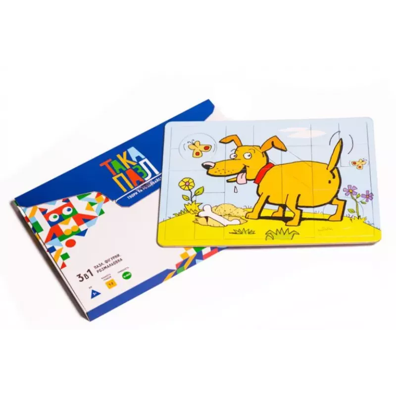 Зануртесь у світ веселощів та розвитку разом із настільною грою "Така Пазл 3 в 1 - Песик"! Ця чудова українська розробка створена спеціально для наймолодших дослідників віком від 3 років, пропонуючи не лише цікаве дозвілля, а й комплексний розвиток важливих навичок. Якщо ви шукаєте ідеальну дитячу г..