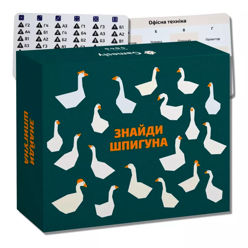 "Знайди Шпигуна" - цікава гра, що потребує логіки та стратегічного мислення. Опишіть ключове слово так, щоб шпигун не мав можливості зрозуміти його сенс!  Це нова розробка від українського виробника, де всі учасники, окрім одного, зусиллями думок намагаються вгадати, хто саме з них "ворожий аг..