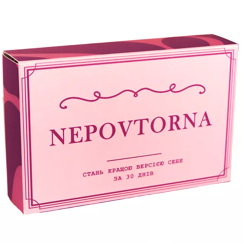 Вітаємо тебе, шукачка нових горизонтів й охоча стати кращою щодня! Якщо ти відчуваєш, що стоїш на плато та бажаєш просунутися далі, якщо відео в соціальних мережах здаються не лише наснажливими, а й викликають почуття заздрості до чужого життя, то мотиваційна настільна гра NEPOVTORNA створена спеціа..